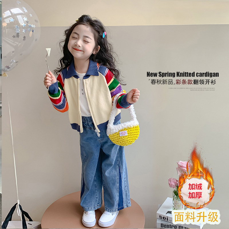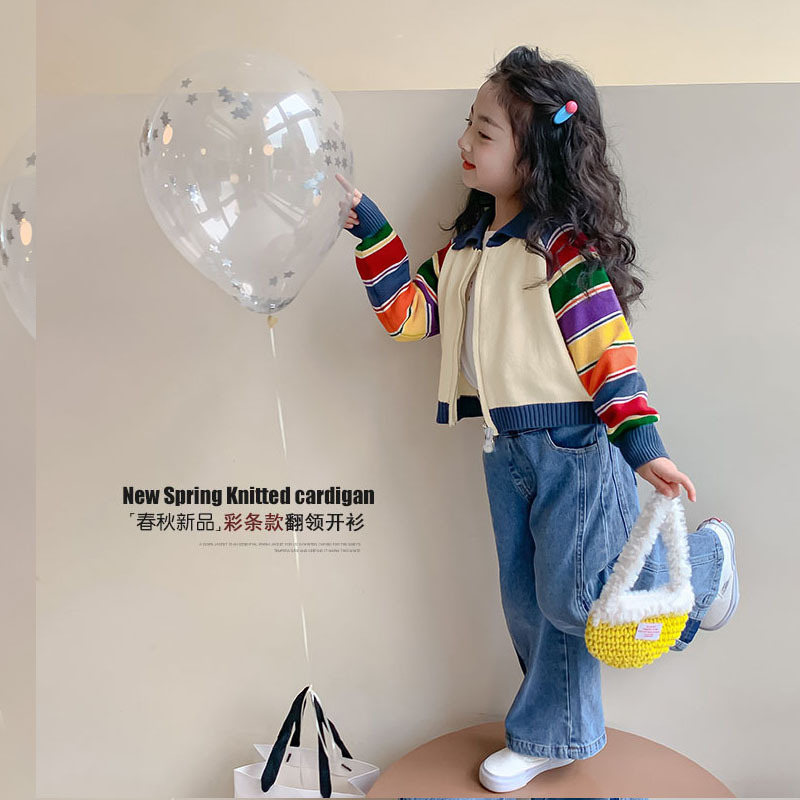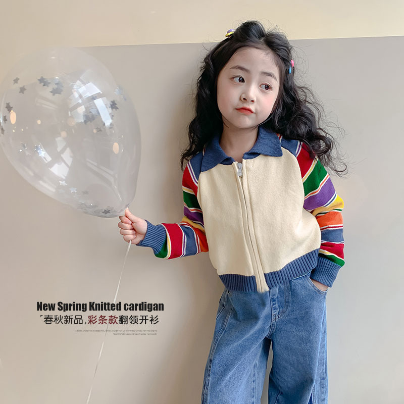 아동용 가디건 가을, 겨울 스타일 봄, 가을 한국식 서양식 컬러 블록 스트라이프 아동용 니트 가디건 겉옷스토어 가기