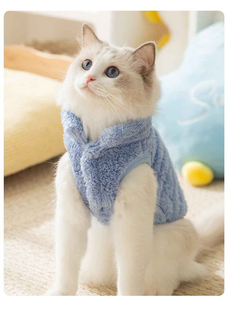 고양이 옷 재미 큰 눈 귀여운 두 다리 옷 따뜻한 벨벳 옷 가을과 겨울 개 의류 중소 애완 동물 옷스토어 가기