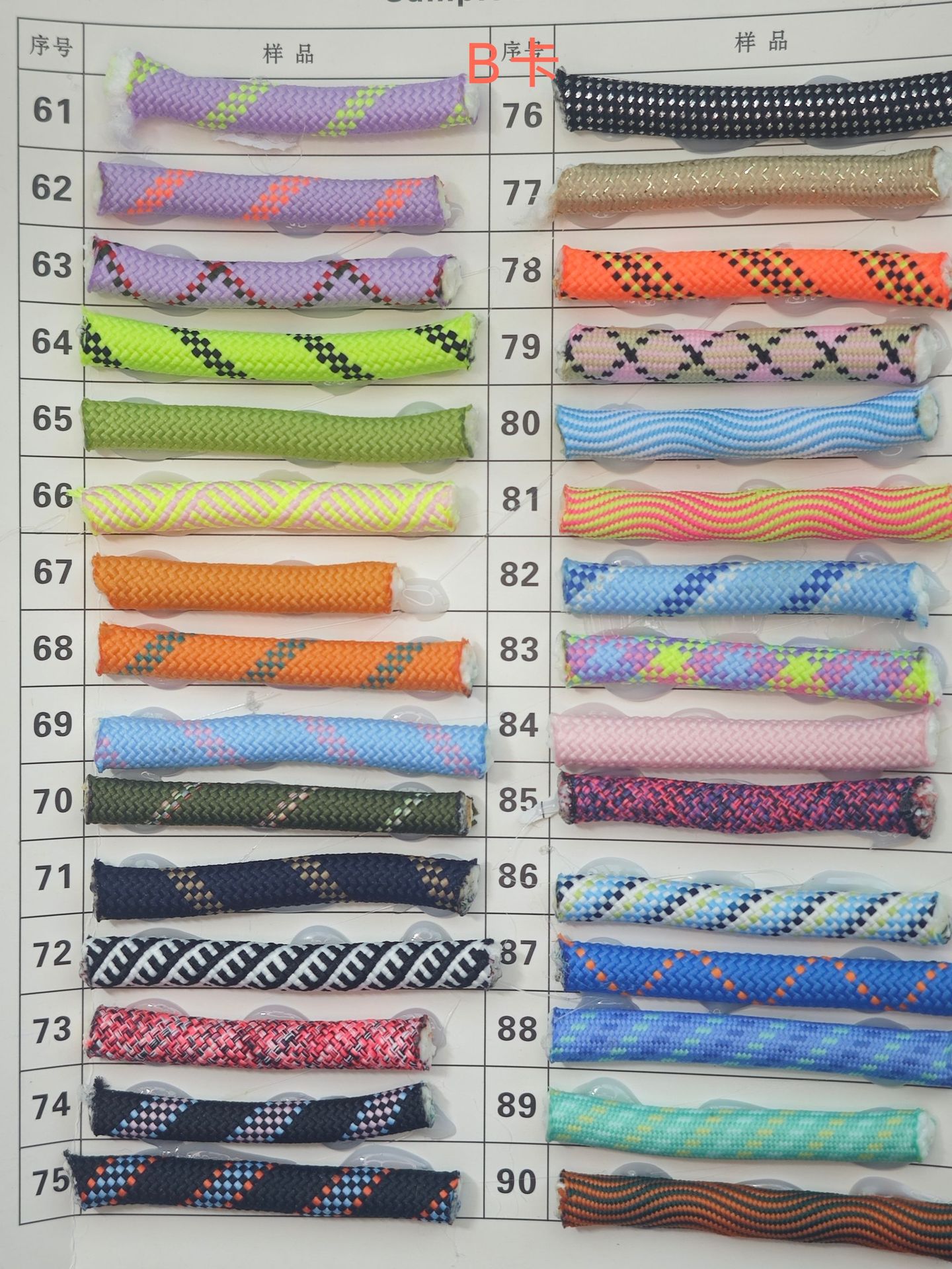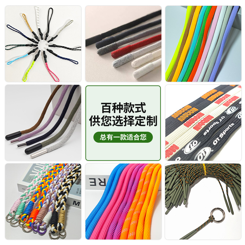 我们是一家专注服装辅料的一线工厂,专业研发各类绳带以及手工加工绳子,主要使用于裤腰带、帽带、鞋带、包包配饰、手机挂绳、收挽绳。公司狠抓质量。赢得了广大客户的赞誉。