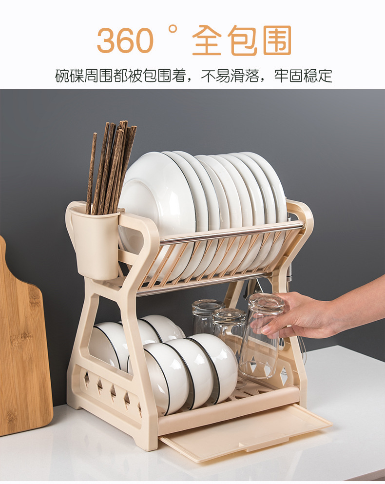 주방 보관 랙 식기 건조 및 세척 접시 랙 찬장 찬장 접시 접시 칼 저장 상자 더블 레이어 식기 랙