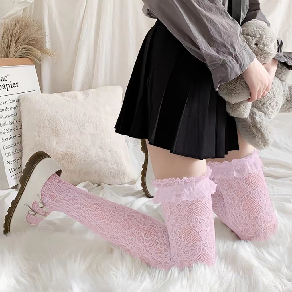JK 걸스 스타킹 로리타 레이스 레이스 새끼 양말 여름 귀여운 피규어가 긴 무릎을 꿇고 스타킹스토어 가기