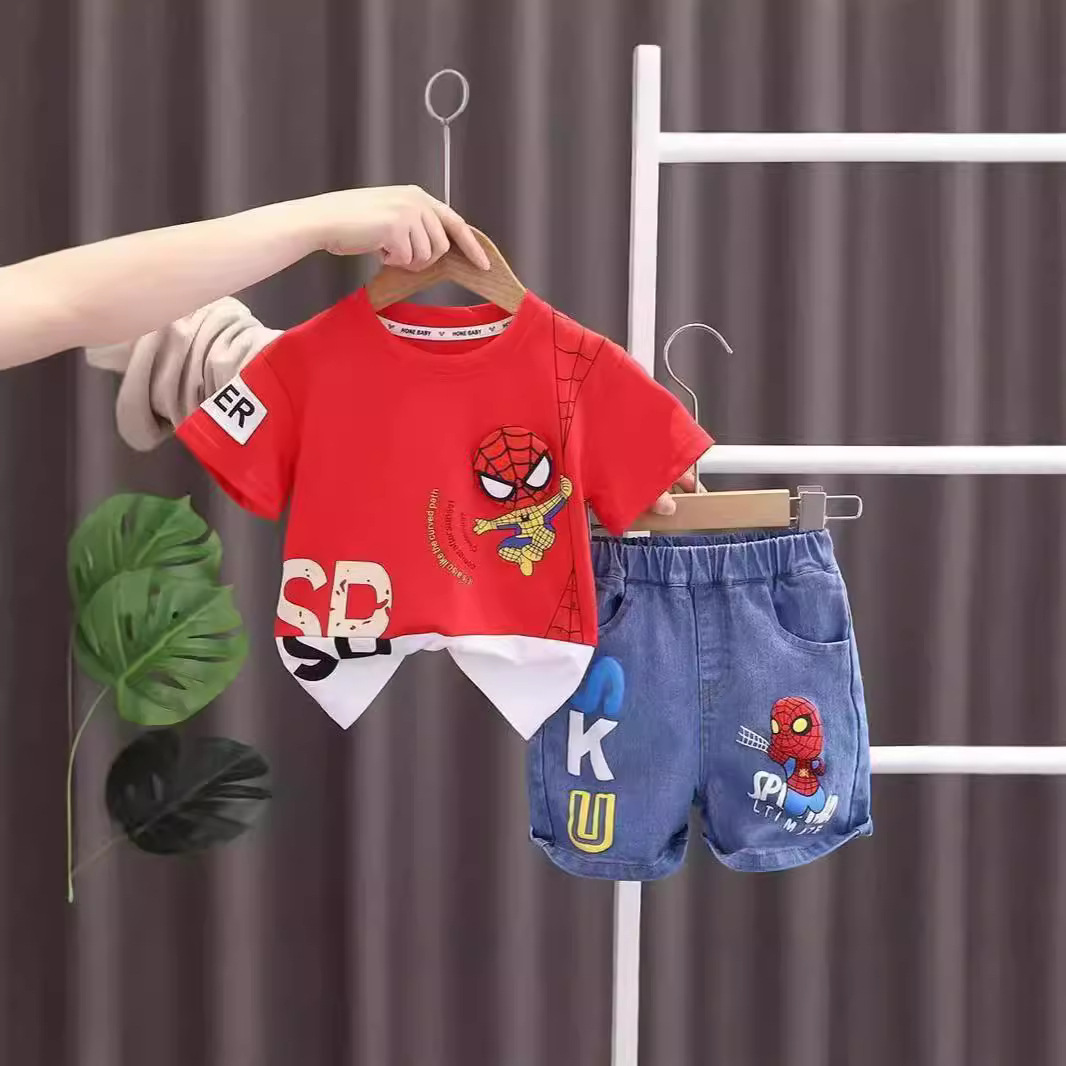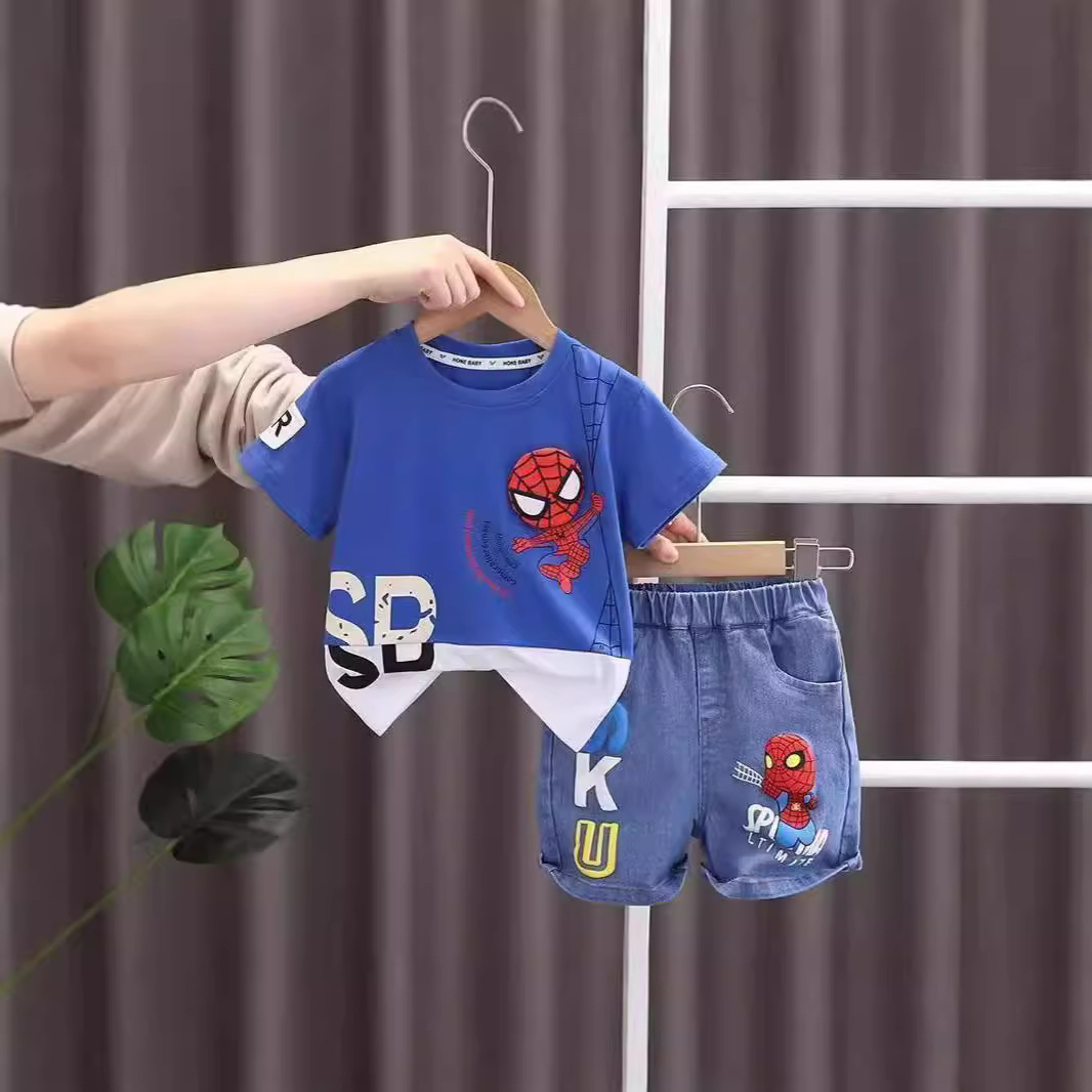 어린이 의류 소년의 여름 세트 새로운 중소 어린이 의류 아기 만화 반팔 투피스 잘 생긴 어린이 옷 트렌디