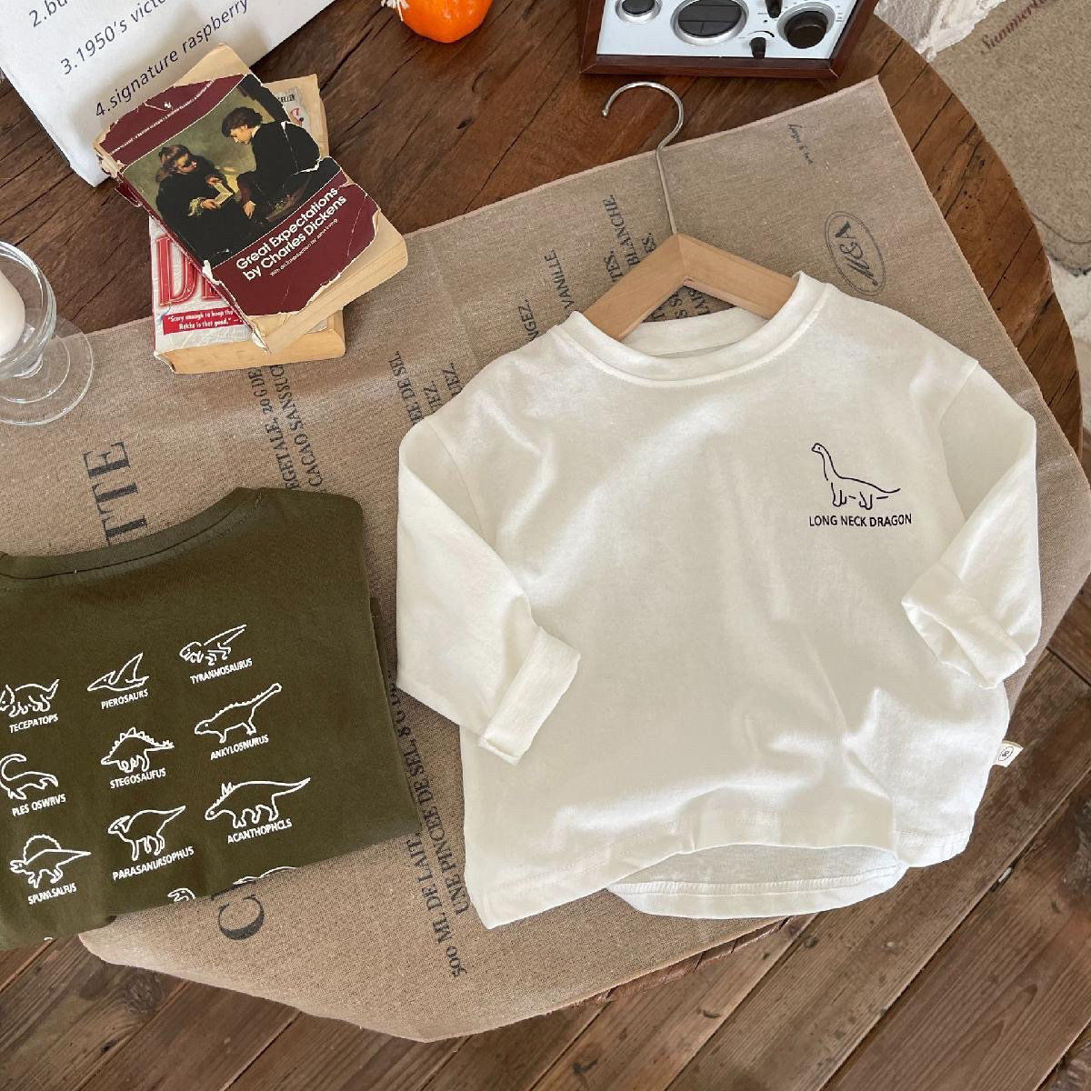 [순면 엣지 스트립] 아동용 다용도 심플 긴팔 티셔츠 프린트 레터 트렌디 한국 스타일 신작