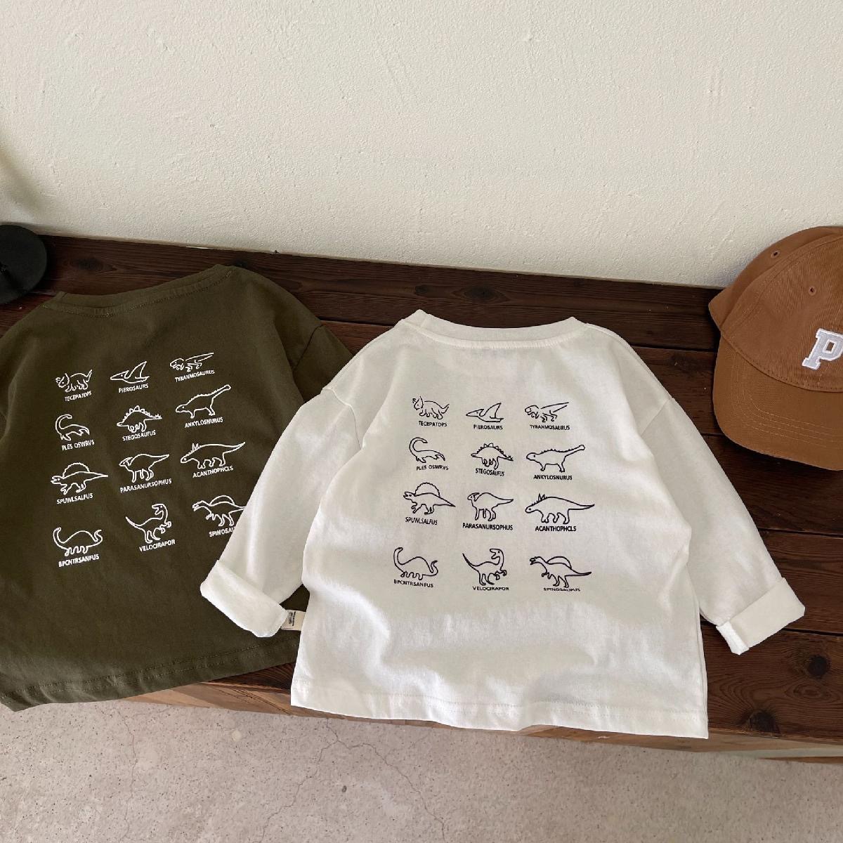 [순면 엣지 스트립] 아동용 다용도 심플 긴팔 티셔츠 프린트 레터 트렌디 한국 스타일 신작스토어 가기