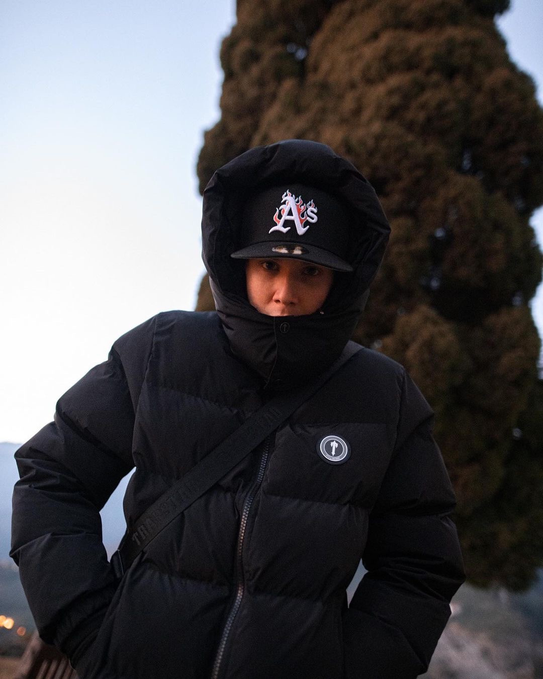 국경 간 트랩 스타 커플의면 패딩 재킷 빈티지 스탠드 칼라 블루 레터 작은 라벨 자수면 패딩 재킷 재킷