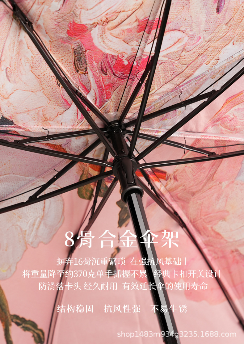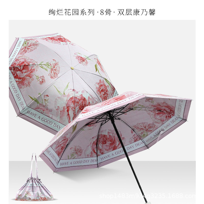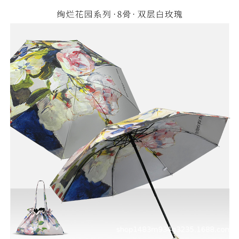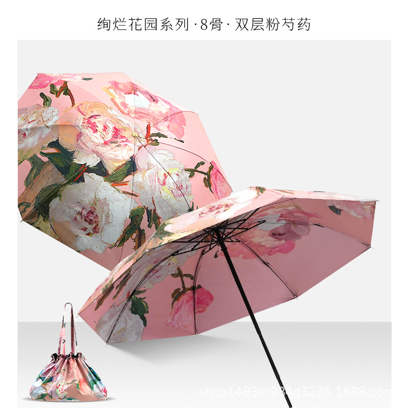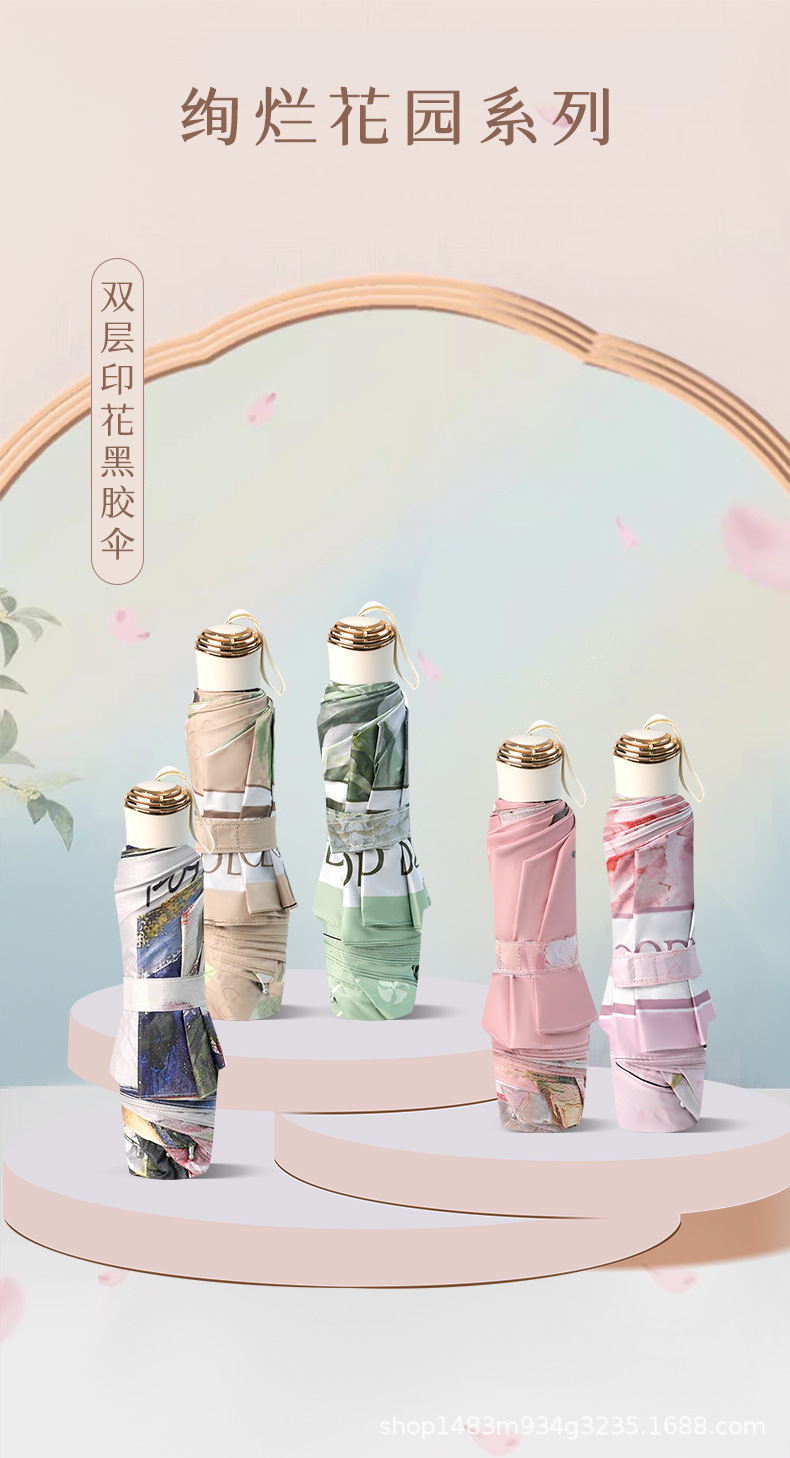 이중 인쇄 유화 우산 선물 도매 접이식 자외선 차단 블랙 글로시 선양 우산, 햇빛 차단 및 비 차단 겸용, 재고 있음스토어 가기