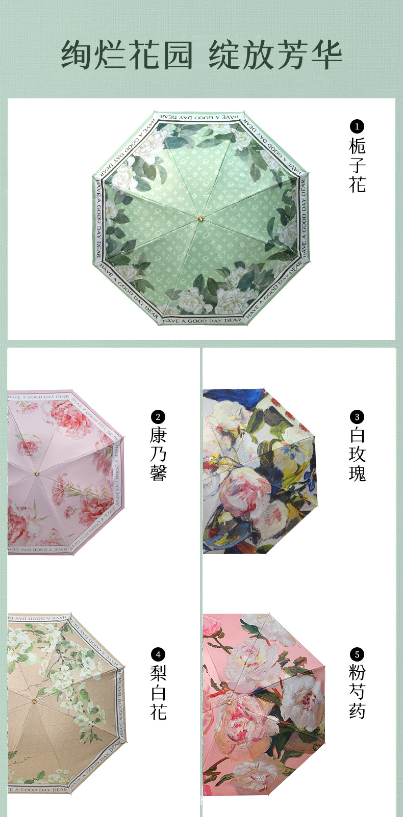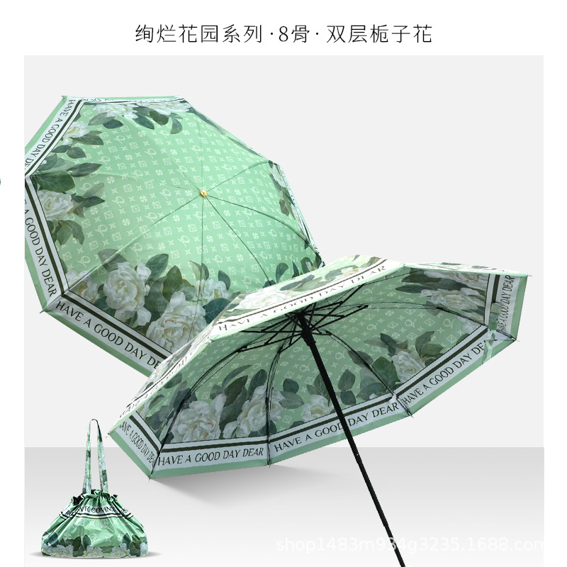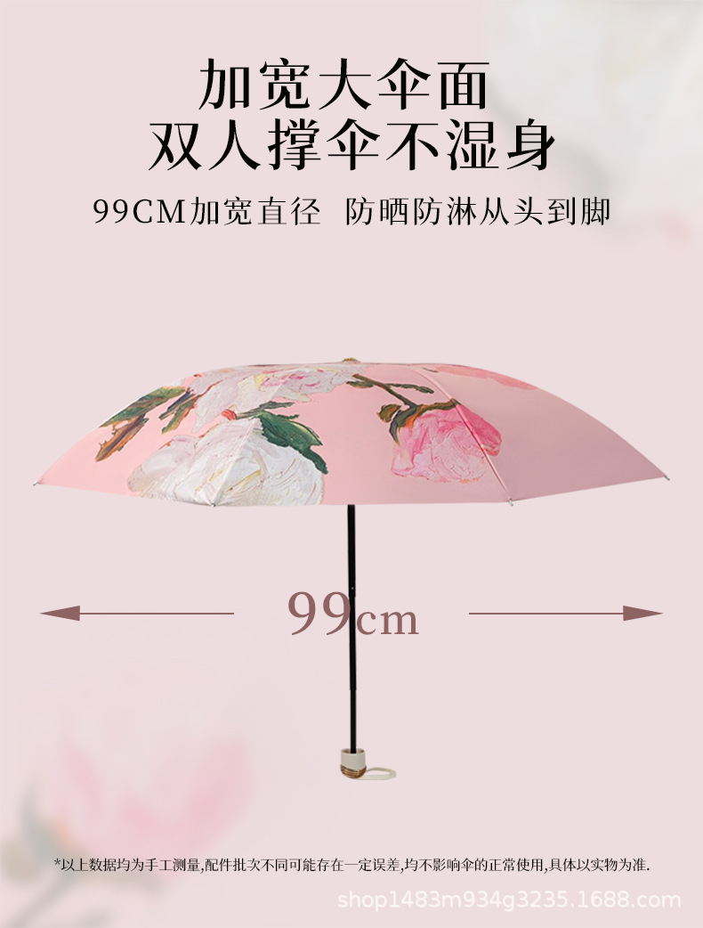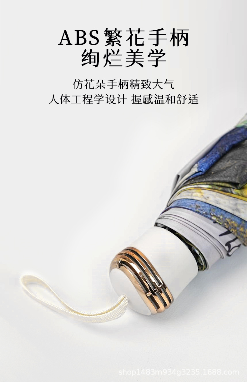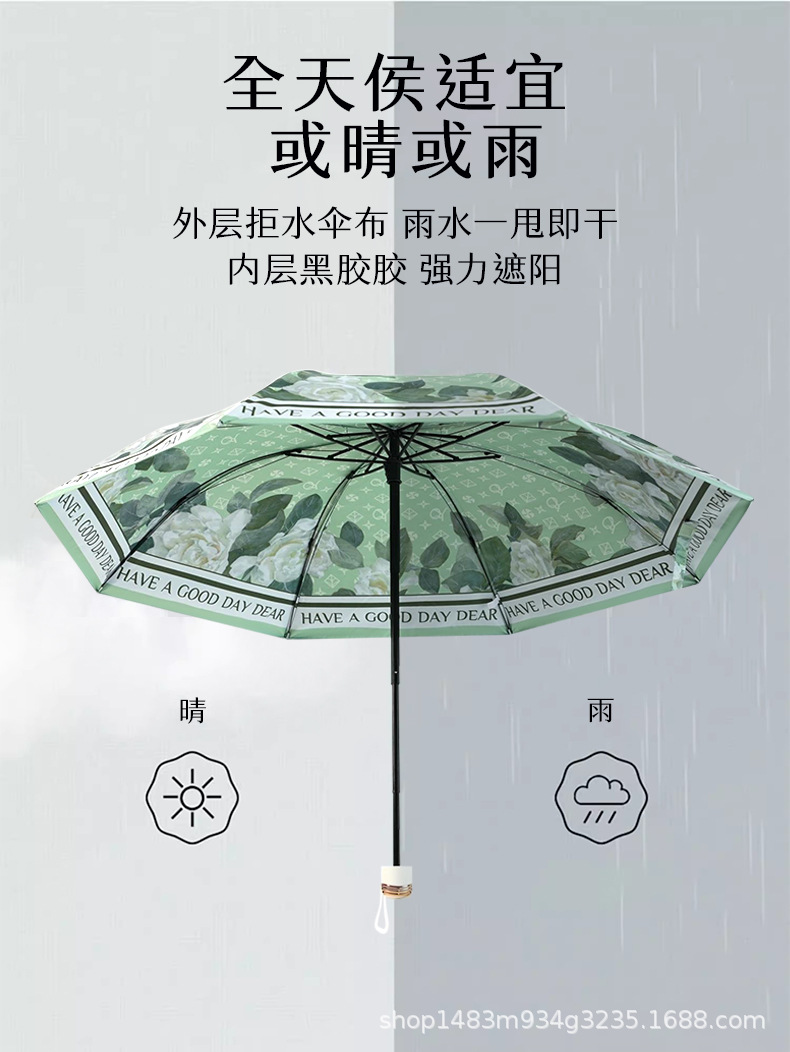 이중 인쇄 유화 우산 선물 도매 접이식 자외선 차단 블랙 글로시 선양 우산, 햇빛 차단 및 비 차단 겸용, 재고 있음스토어 가기