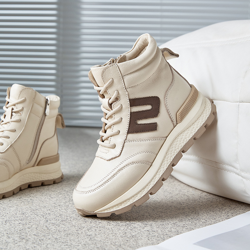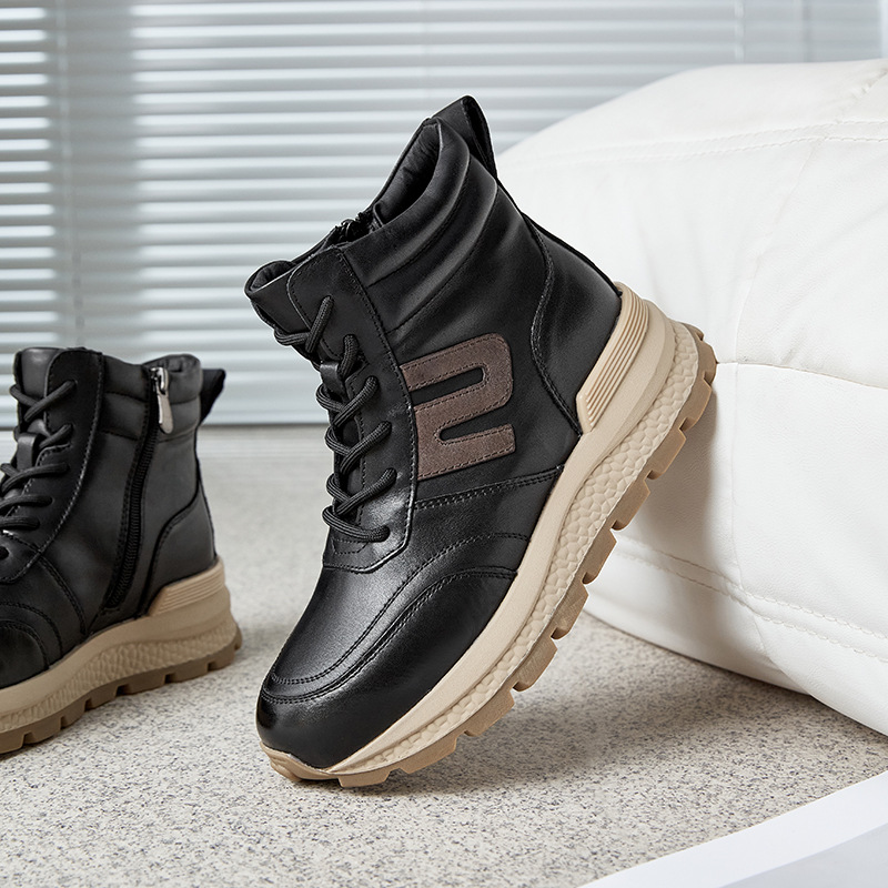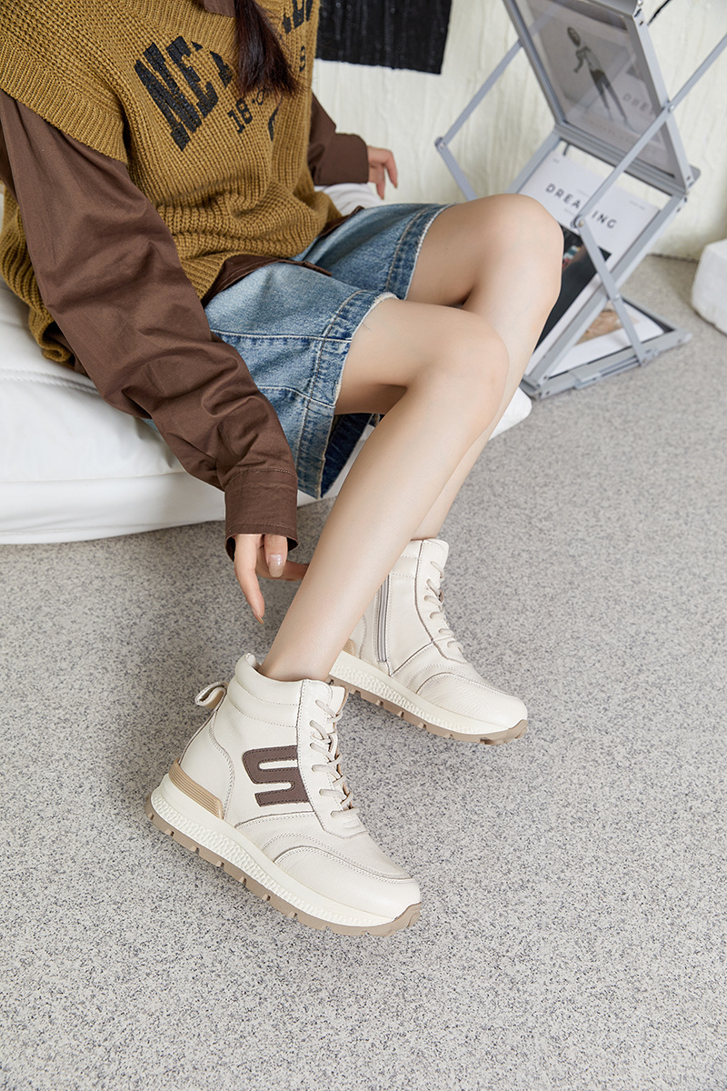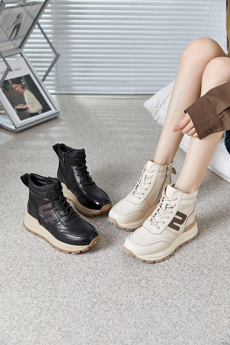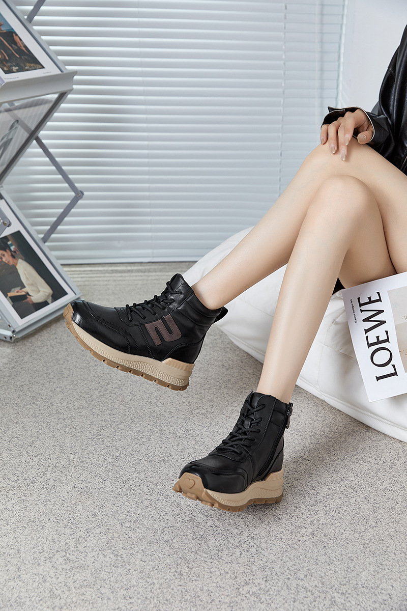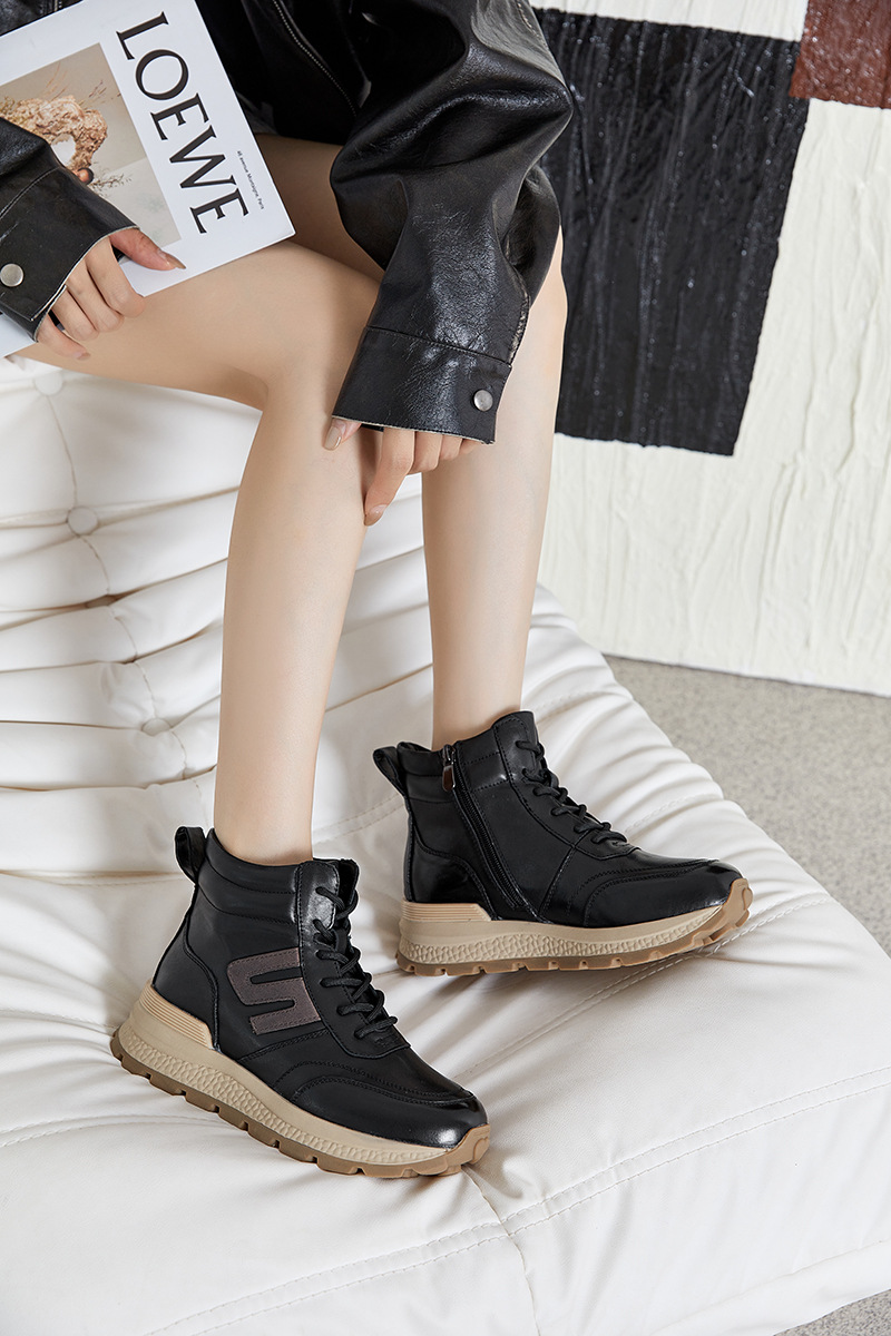 두꺼운 바닥 캐주얼 부츠 여성의 2024 가을과 겨울 새로운 가죽 스포츠 스타일 플랫폼 하단 짧은 부츠 부드러운 바닥면 부츠 하이 탑 신발