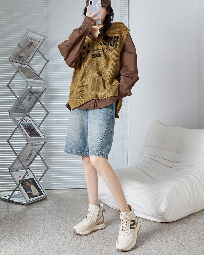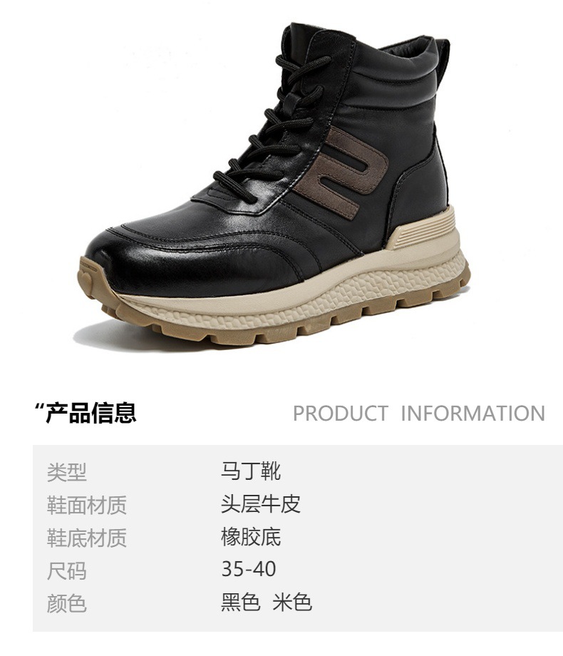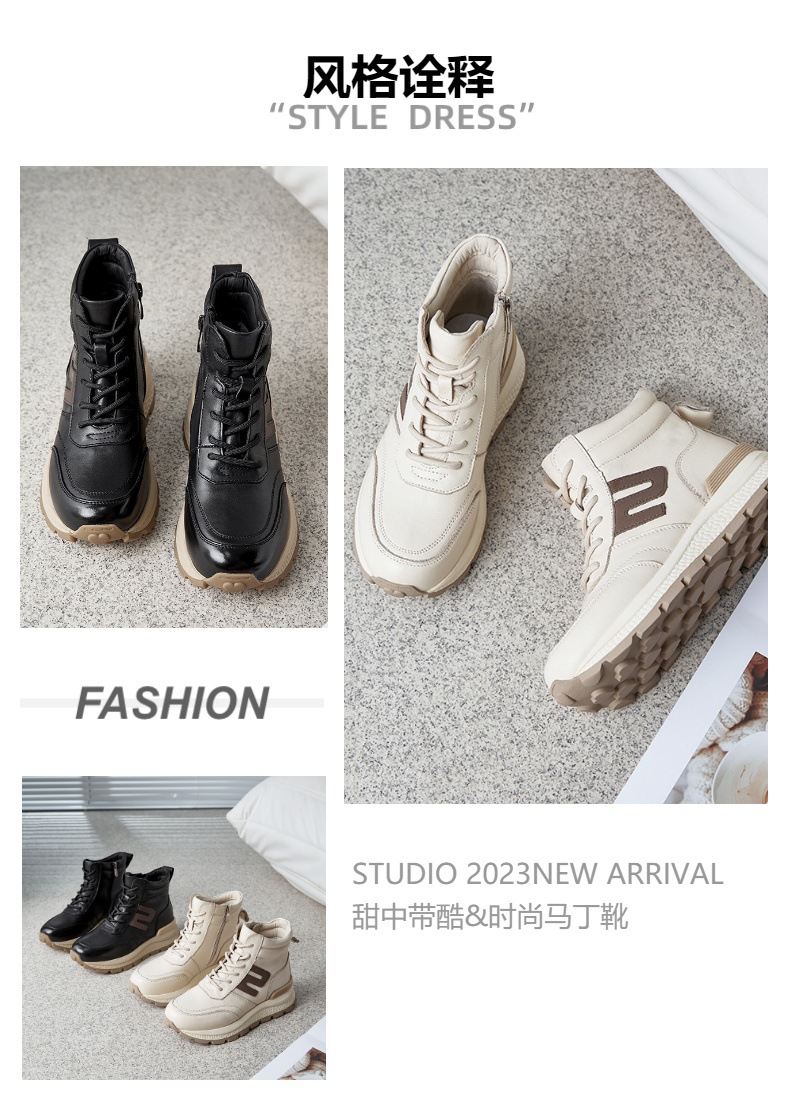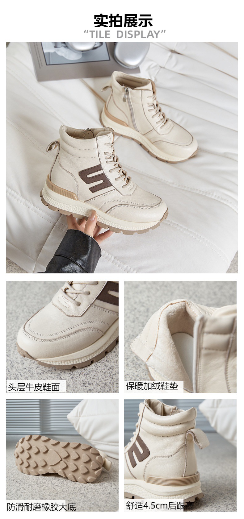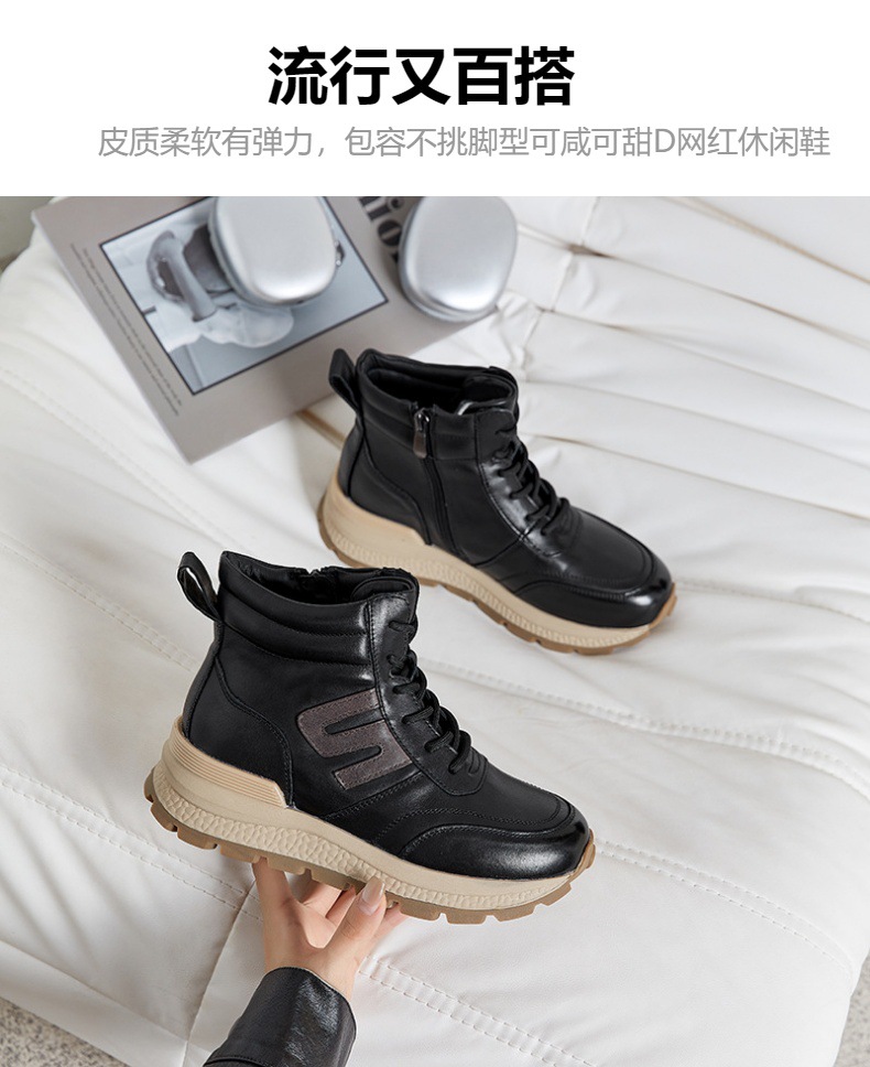 두꺼운 바닥 캐주얼 부츠 여성의 2024 가을과 겨울 새로운 가죽 스포츠 스타일 플랫폼 하단 짧은 부츠 부드러운 바닥면 부츠 하이 탑 신발스토어 가기