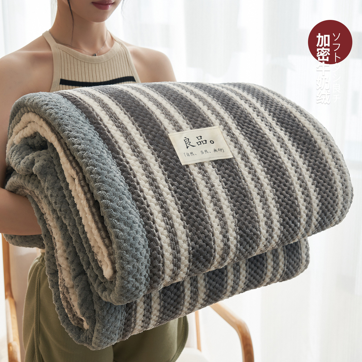• 비니 벨벳-그레이 스트립 [A급 산모 및 유아용 벨벳, 보풀 없음 및 보풀 없음]