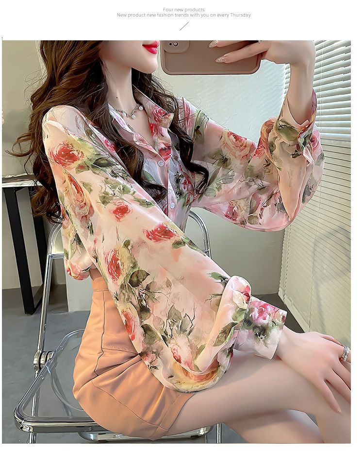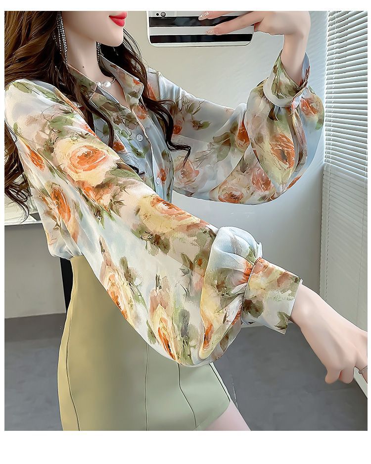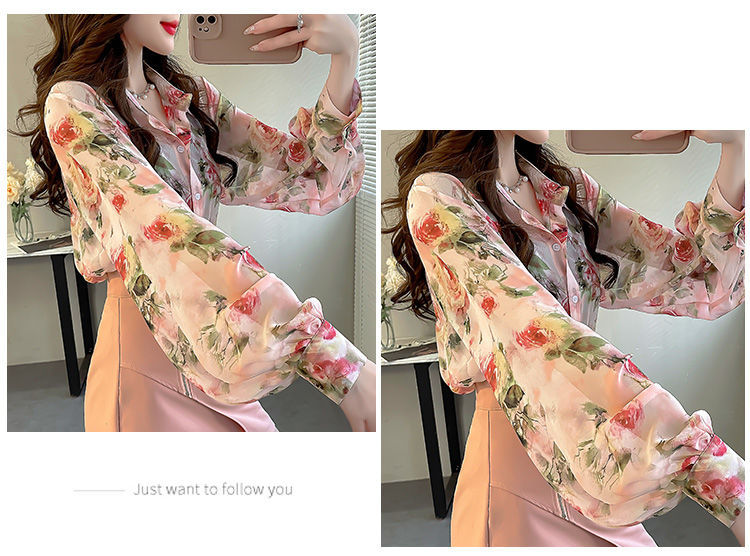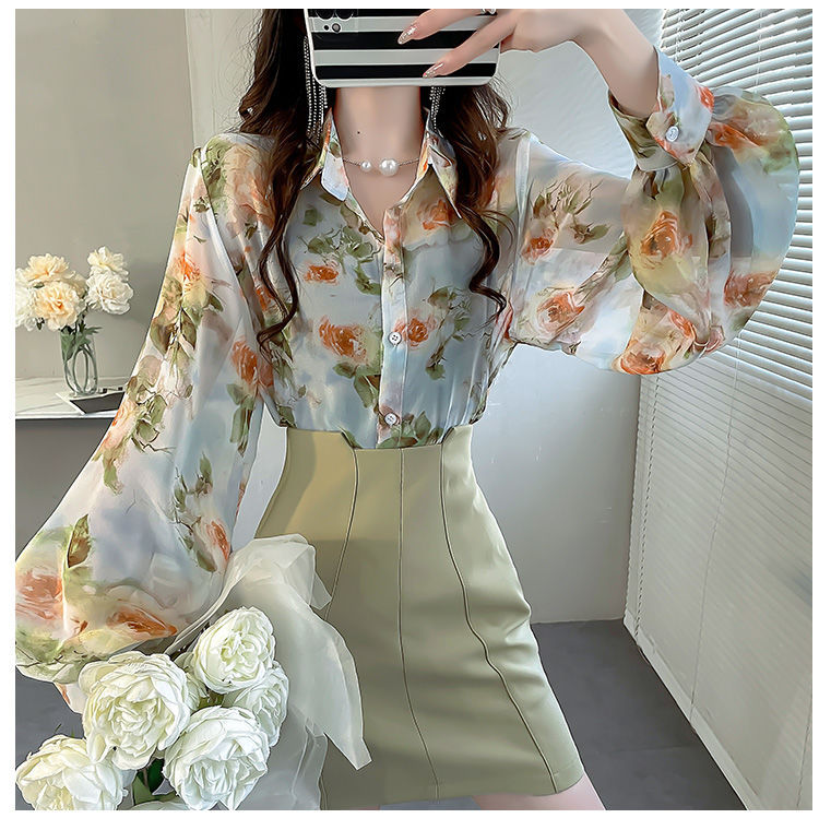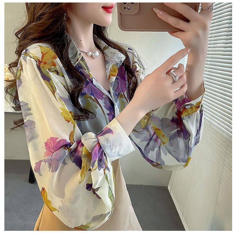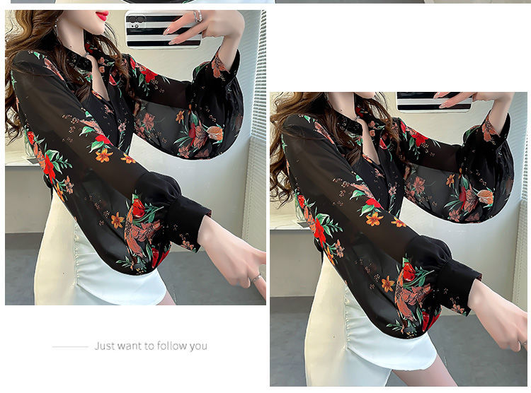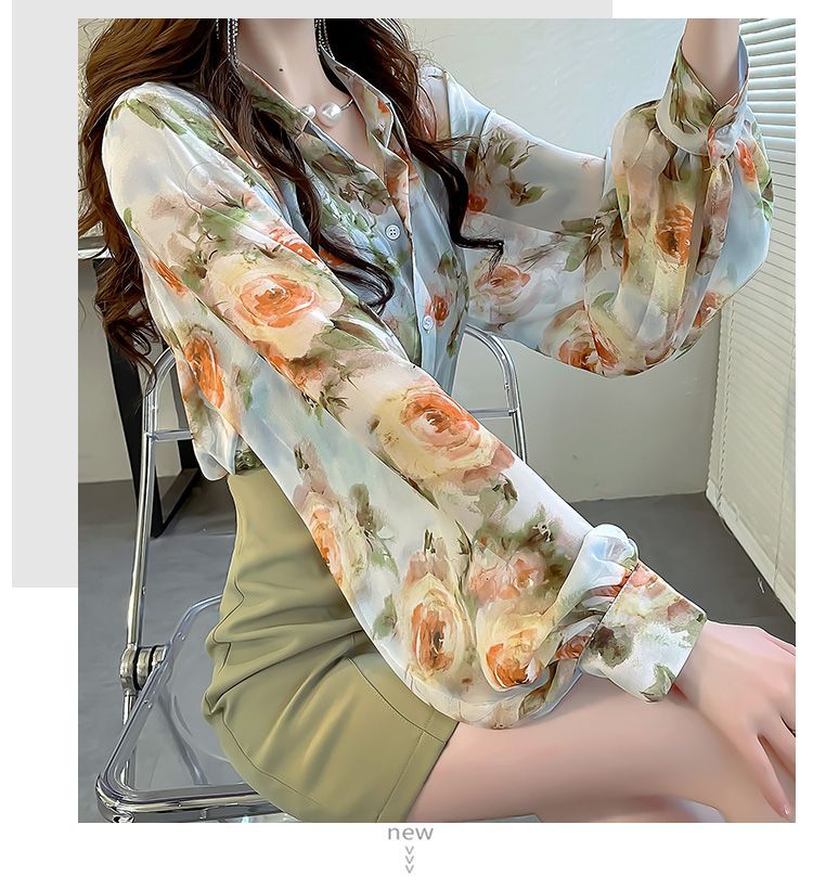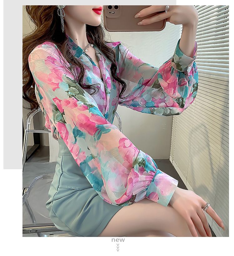 랜턴 슬리브 태양 보호 의류 여성 최고 여름 빈티지 쉬폰 셔츠 여성용 스타일 인쇄 우아한 에어컨 셔츠 여성용 셔츠스토어 가기