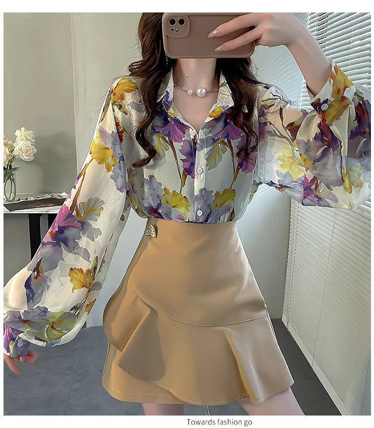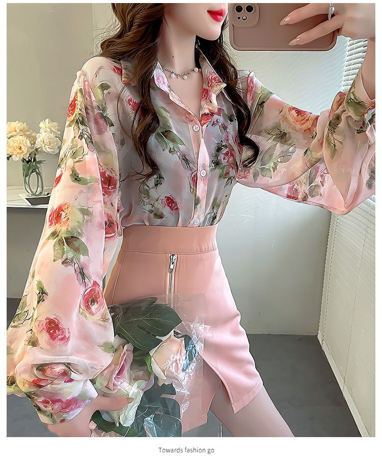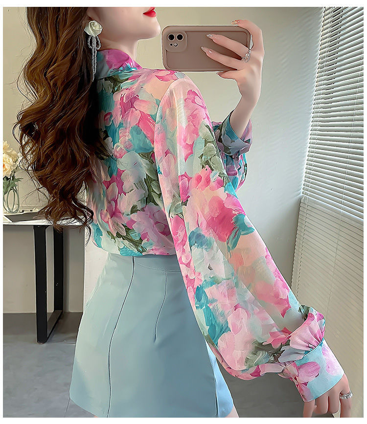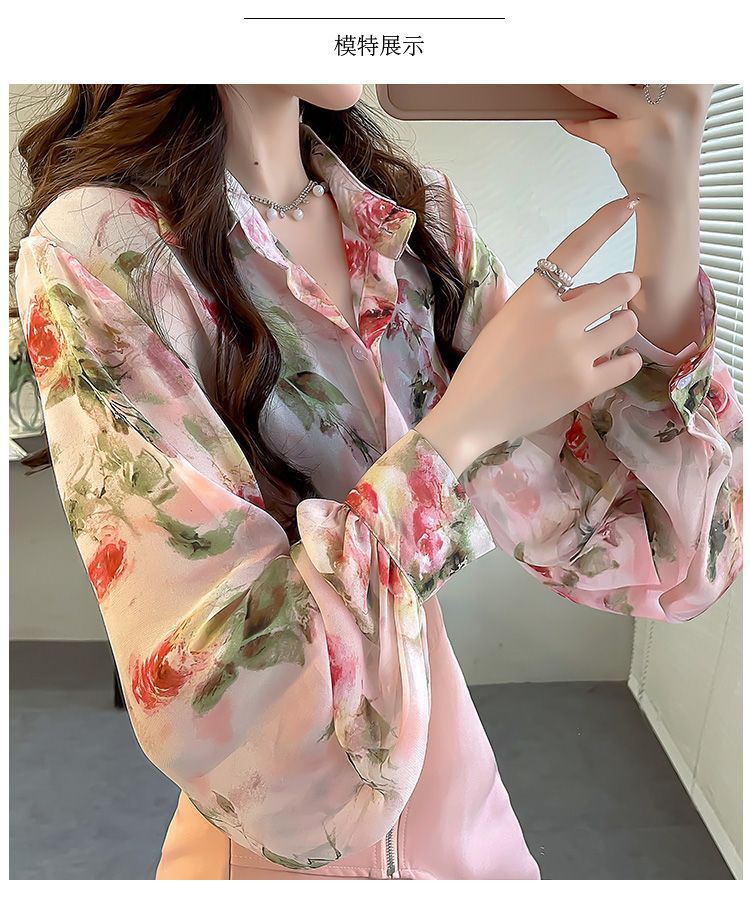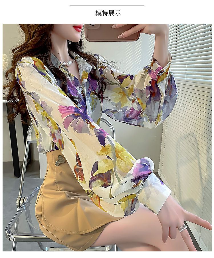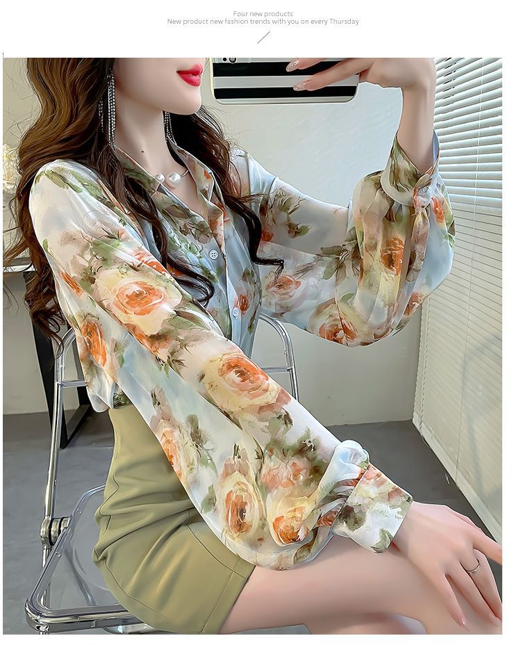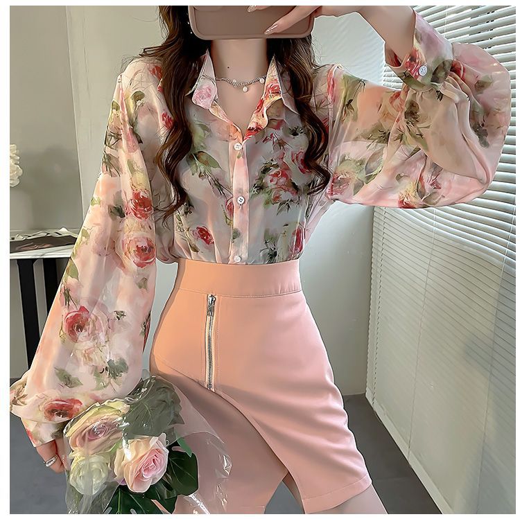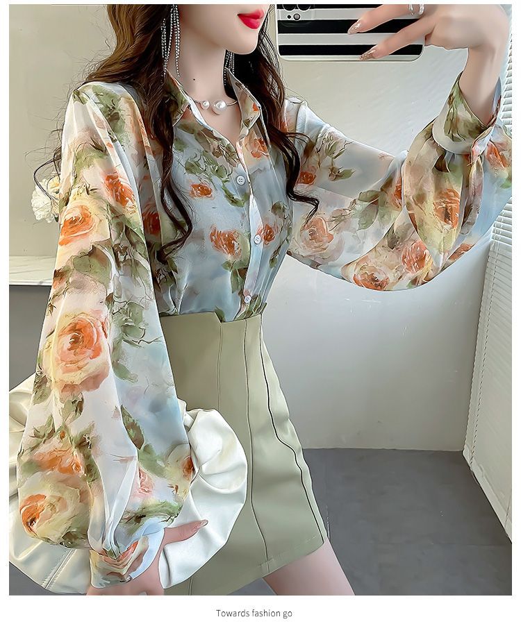 랜턴 슬리브 태양 보호 의류 여성 최고 여름 빈티지 쉬폰 셔츠 여성용 스타일 인쇄 우아한 에어컨 셔츠 여성용 셔츠스토어 가기