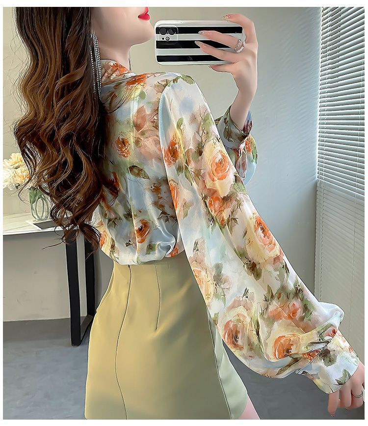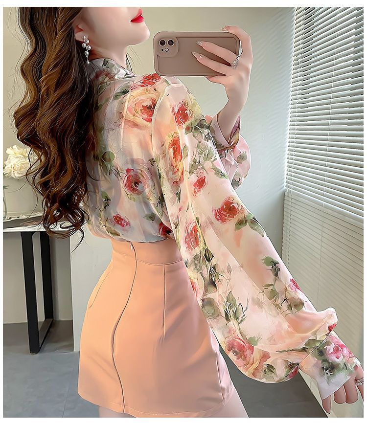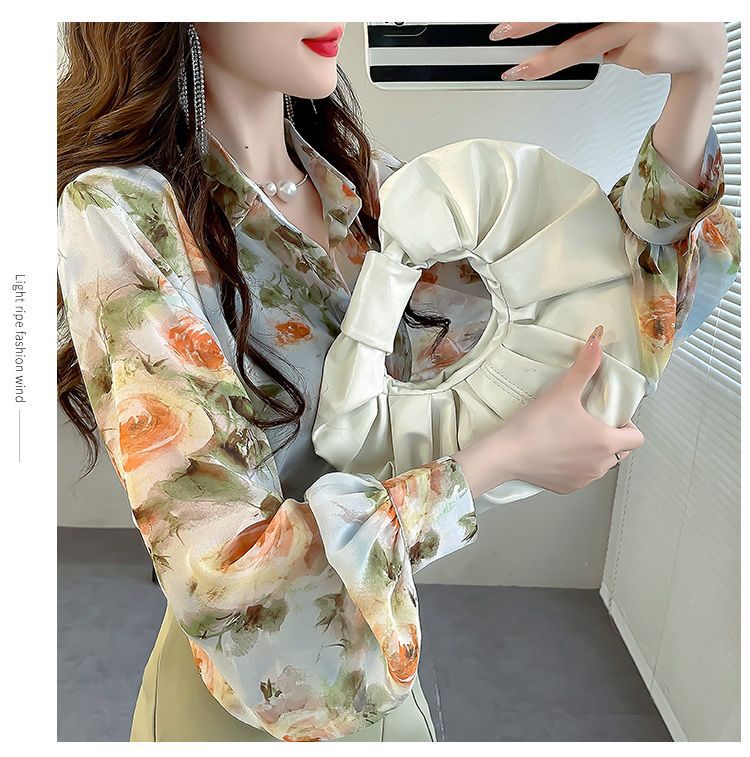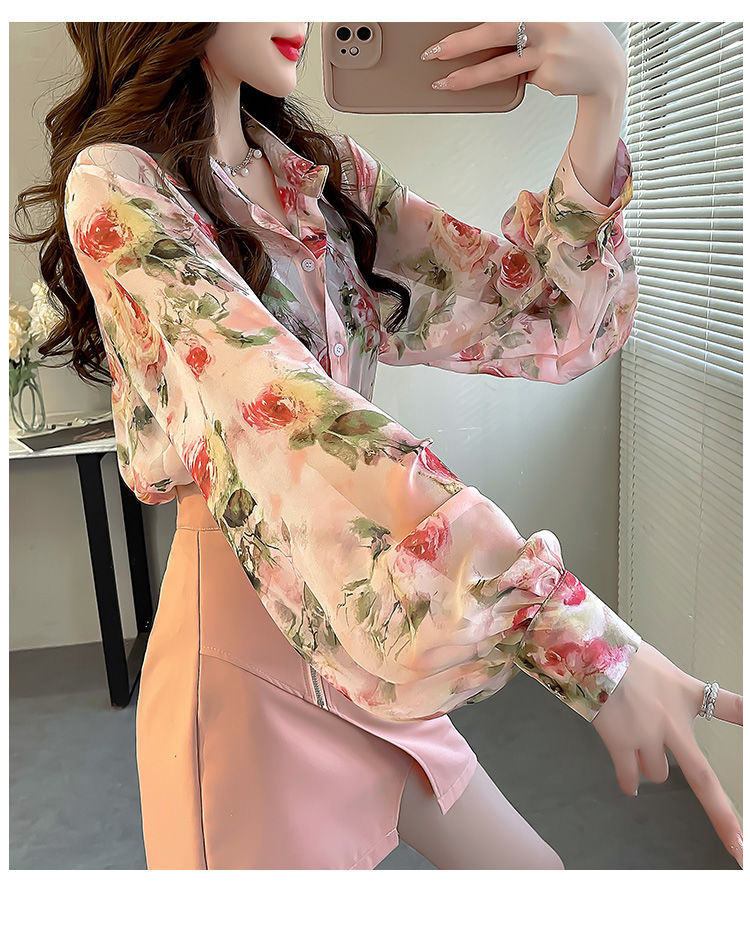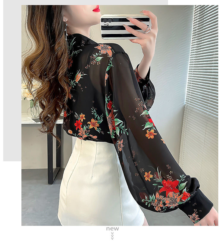 랜턴 슬리브 태양 보호 의류 여성 최고 여름 빈티지 쉬폰 셔츠 여성용 스타일 인쇄 우아한 에어컨 셔츠 여성용 셔츠