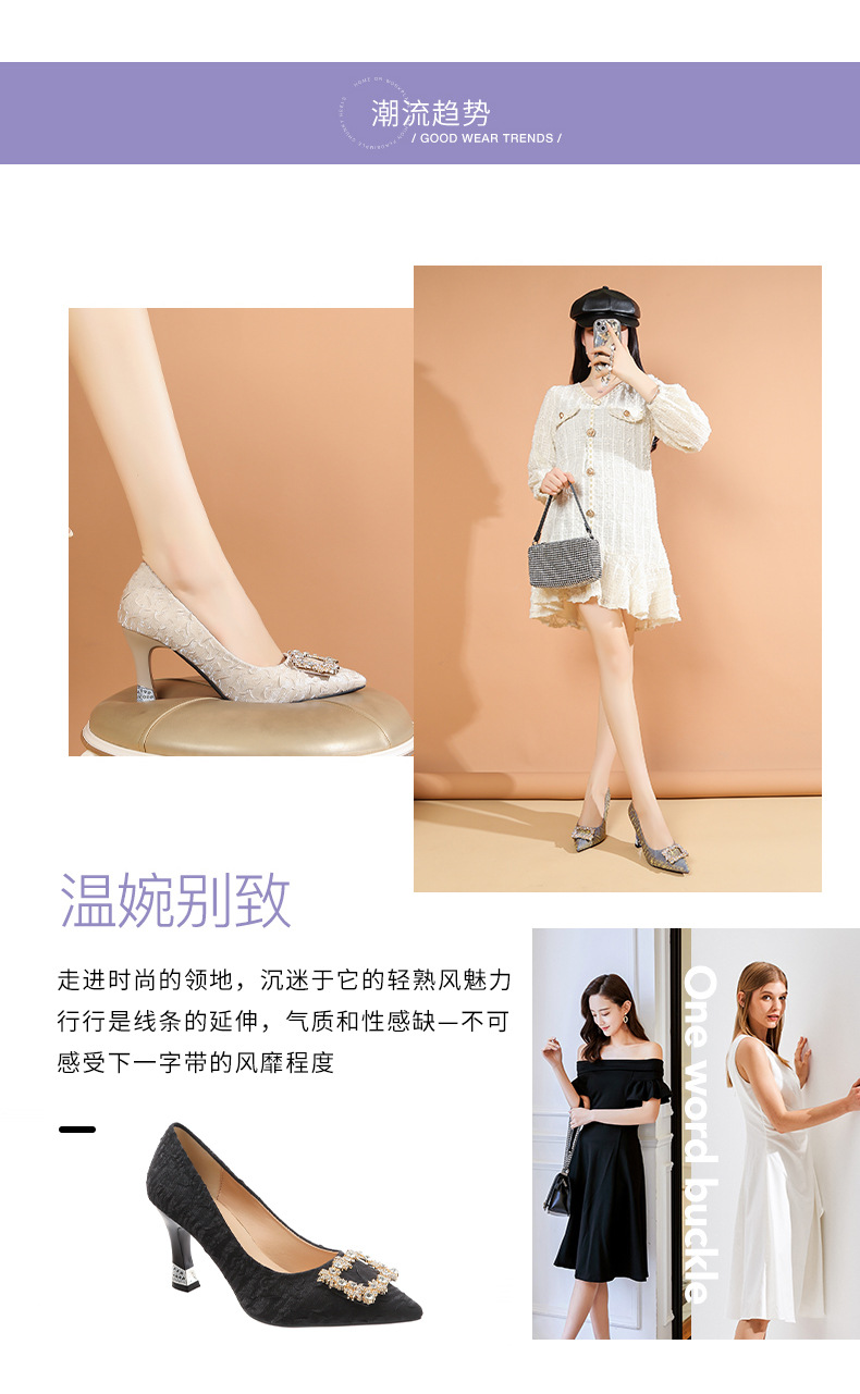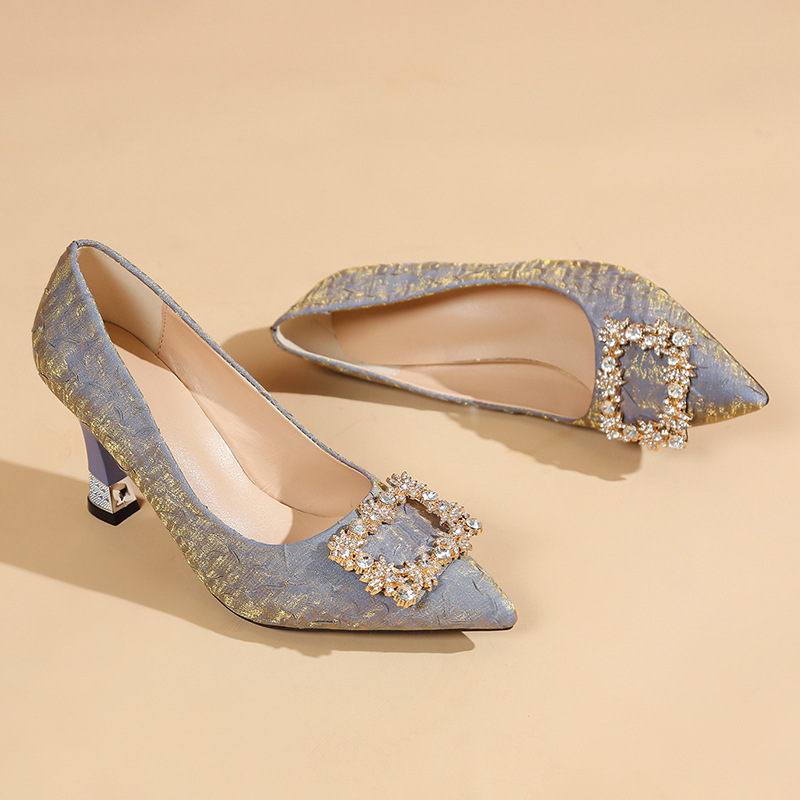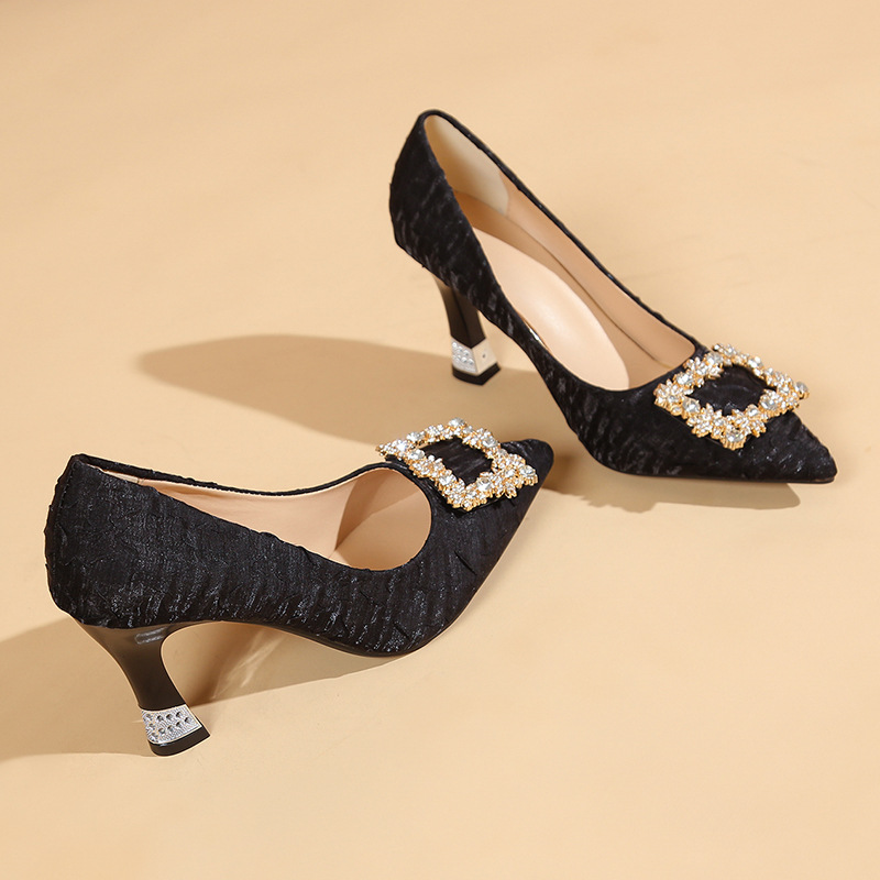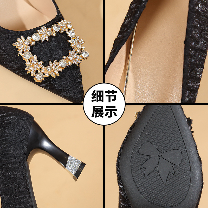 Xiaoxiang 스타일 라인석 스퀘어 버클 스틸레토 힐 하이힐 가을 2024 여성을위한 새로운 지적 아름다운 기질 전문 싱글 신발