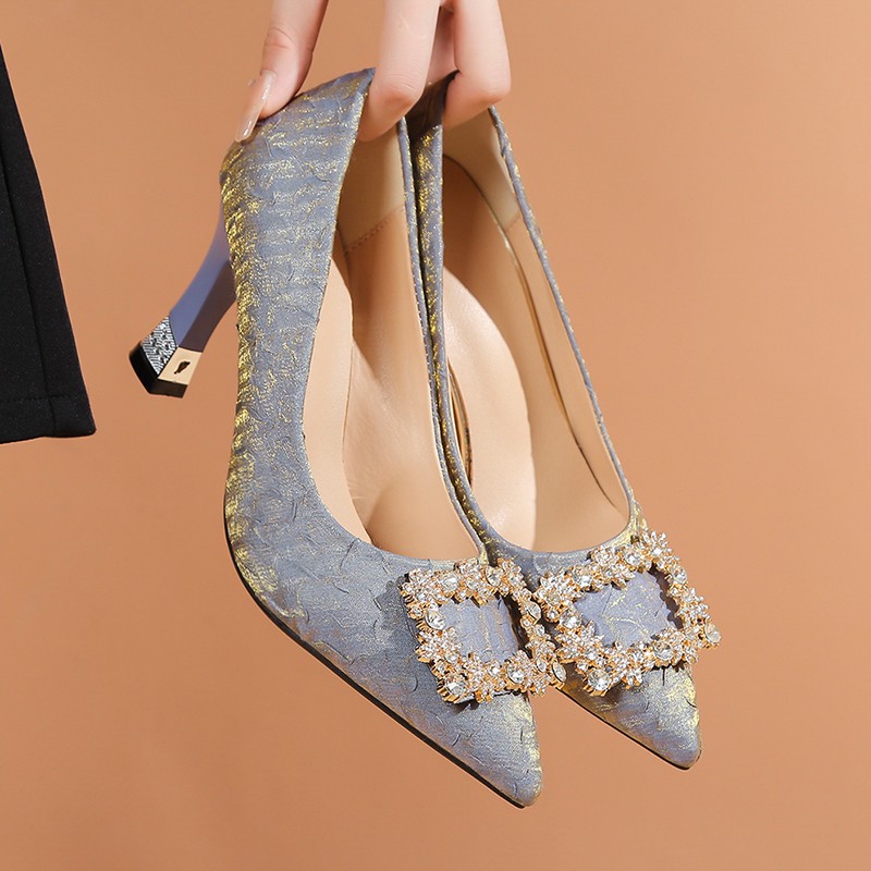 Xiaoxiang 스타일 라인석 스퀘어 버클 스틸레토 힐 하이힐 가을 2024 여성을위한 새로운 지적 아름다운 기질 전문 싱글 신발스토어 가기