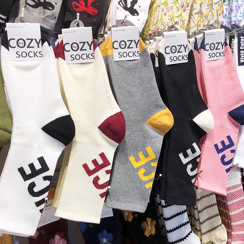 한국 수입 양말 COZY 미국 스케이트 보드 스트리트 댄스 소녀 스포츠 코튼 양말 색상 블록 문자 여성용 미드 튜브 양말스토어 가기