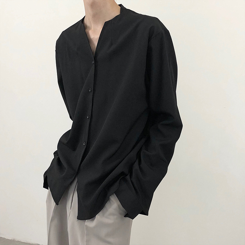 높은 콜드 금욕 스타일 새로운 칼라리스 화이트 셔츠 남성용 이탈리아 스타일 비 다림질 느슨한 긴팔 탑 디자인 V 넥 셔츠스토어 가기