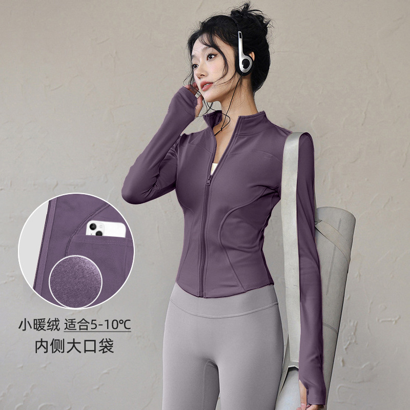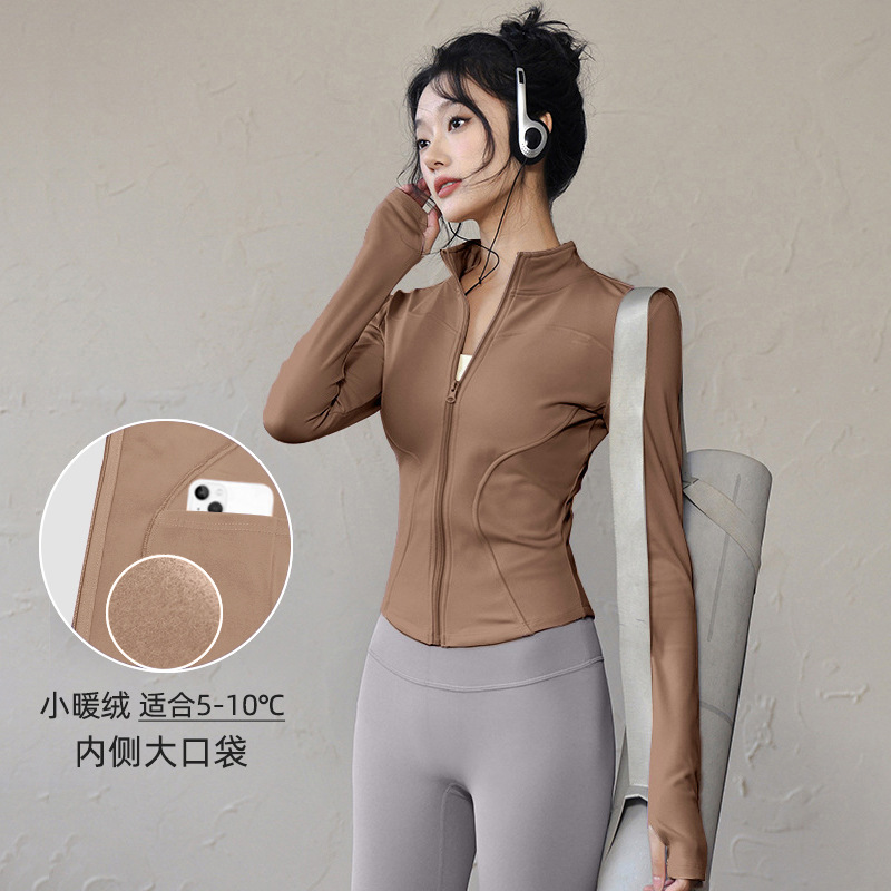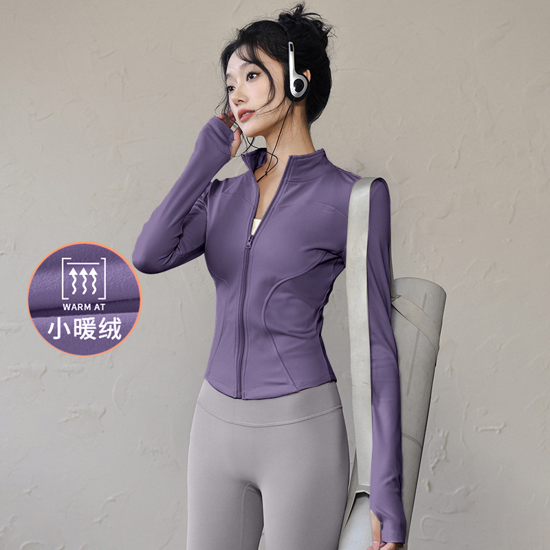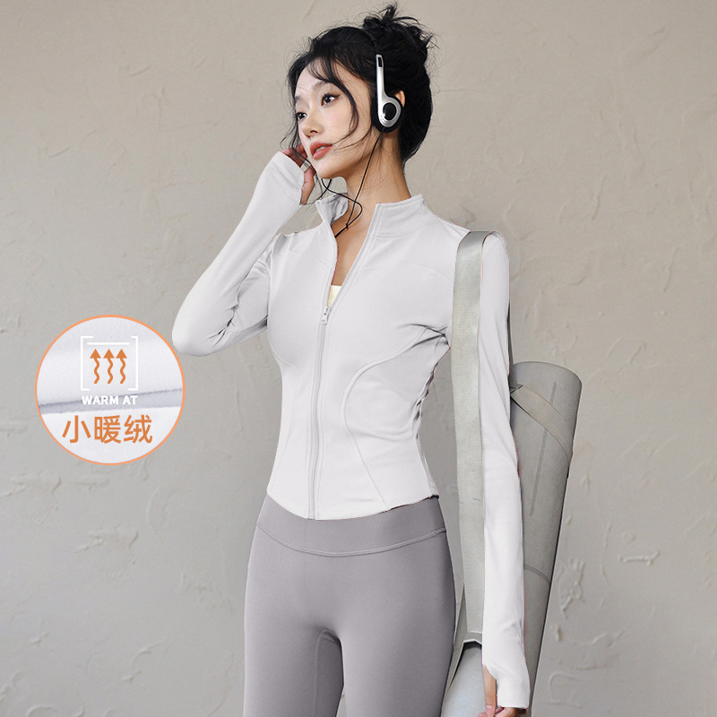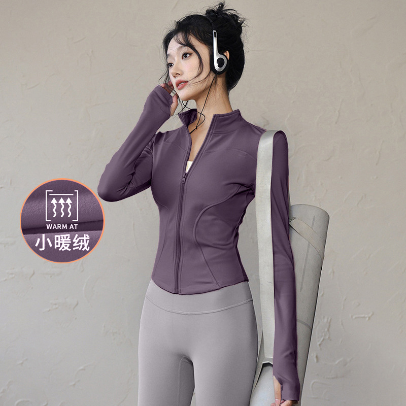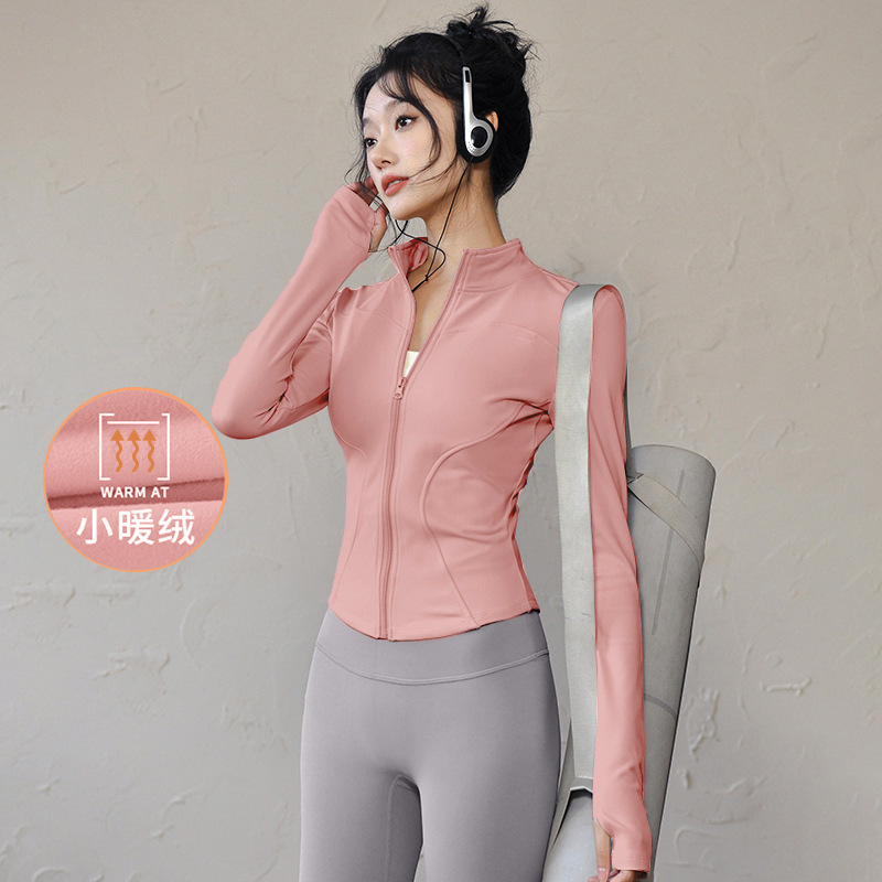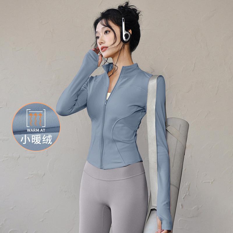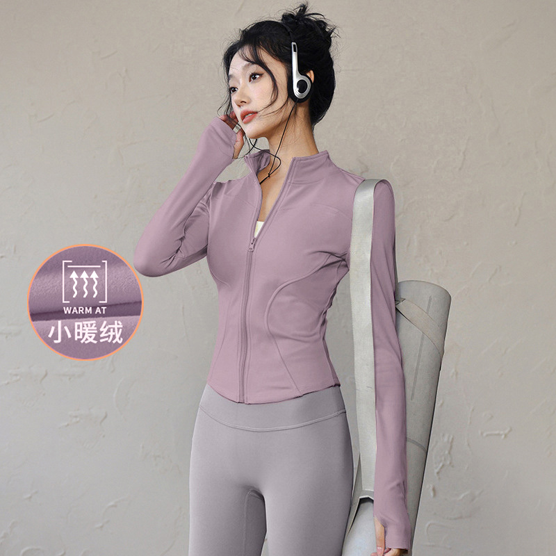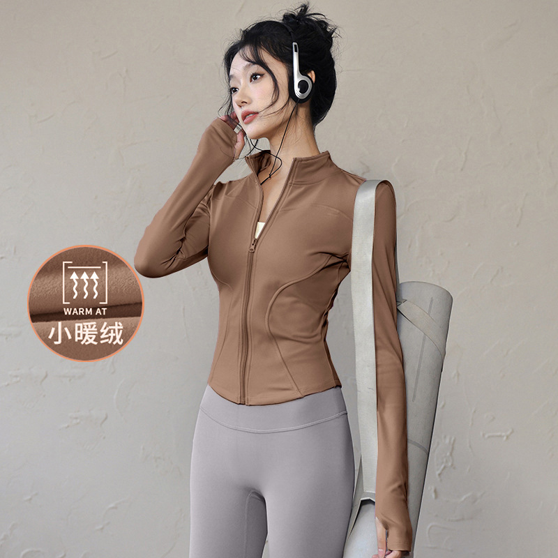겨울 기모 두꺼운 스포츠 코트 여성용 타이트 요가 옷 긴 소매 지퍼 탑 카디건 달리기 피트니스 빠른 건조 옷