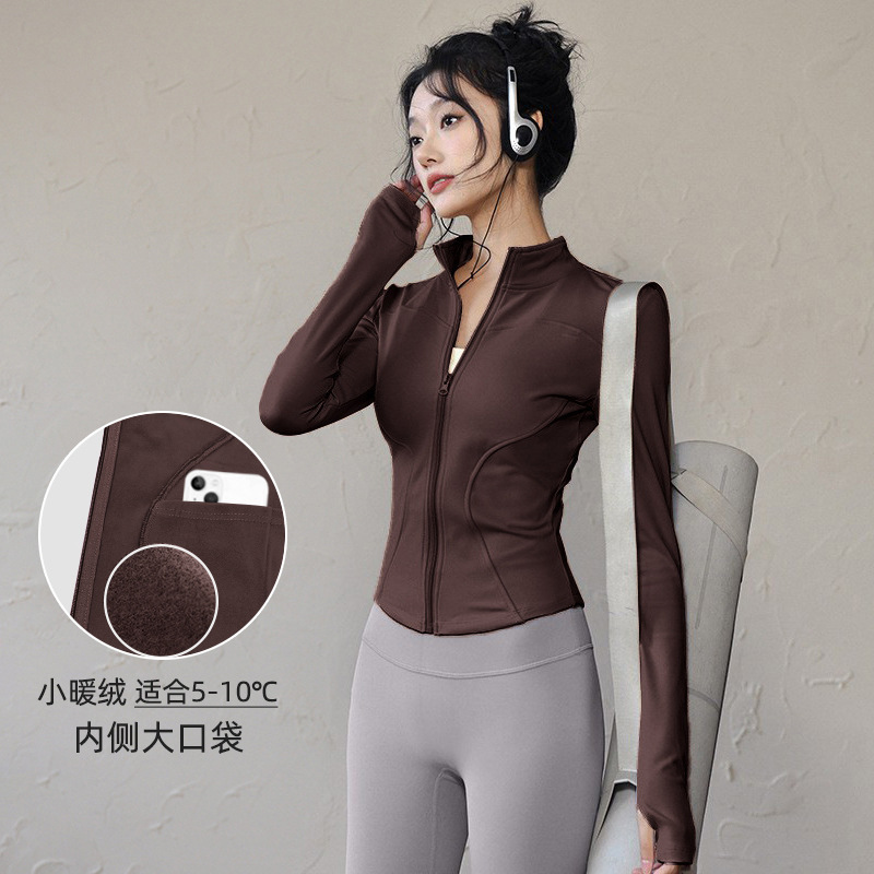 겨울 기모 두꺼운 스포츠 코트 여성용 타이트 요가 옷 긴 소매 지퍼 탑 카디건 달리기 피트니스 빠른 건조 옷스토어 가기