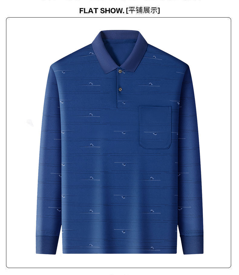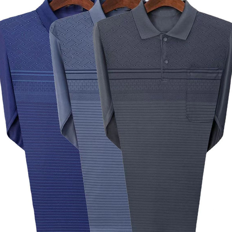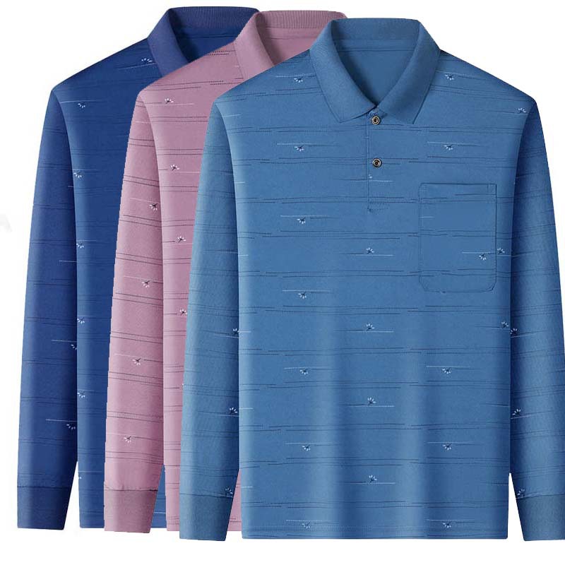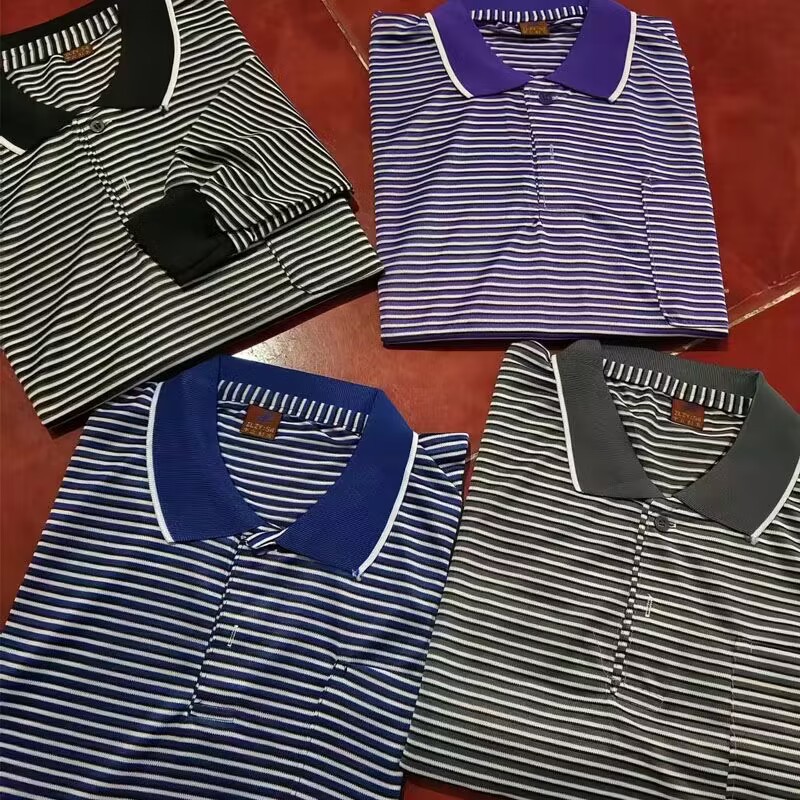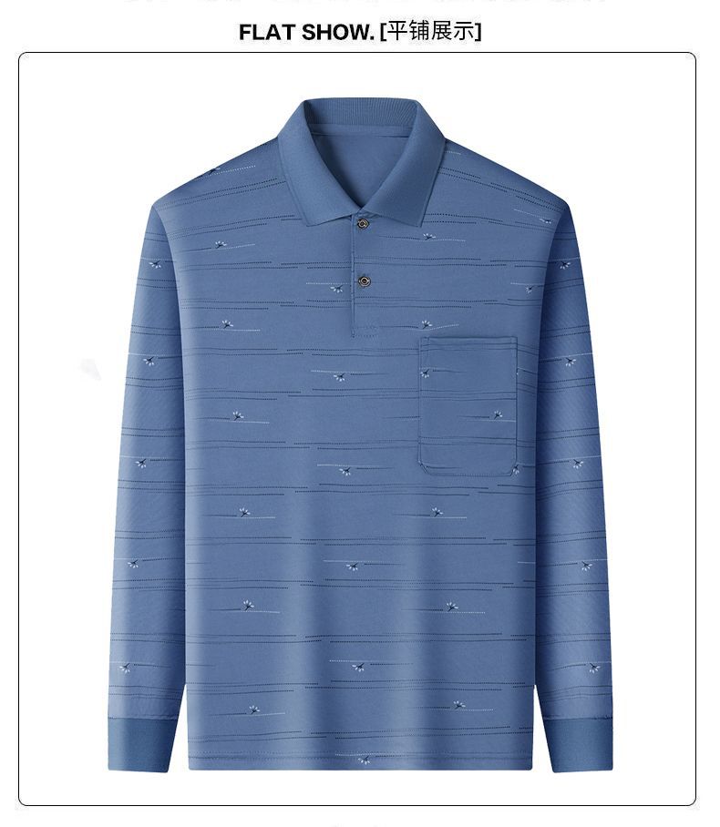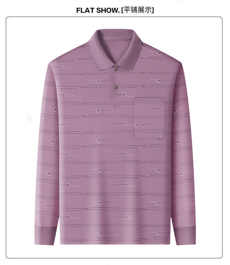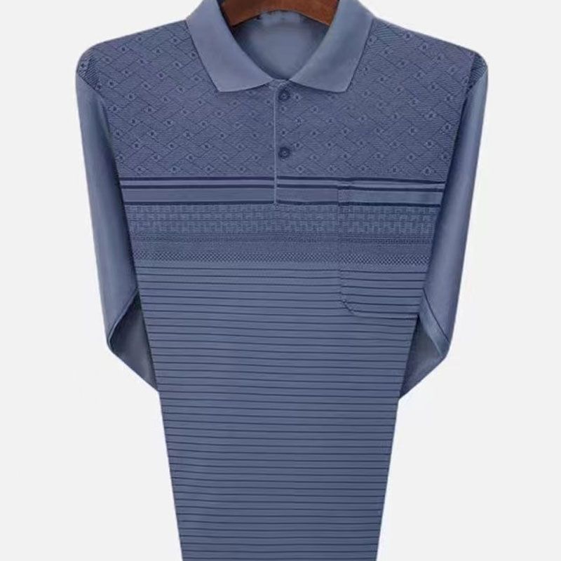 2024 남자 중년 티셔츠 봄과 가을 옷깃 최고 남자 캐주얼 느슨한 긴팔 줄무늬 아빠 탑스토어 가기