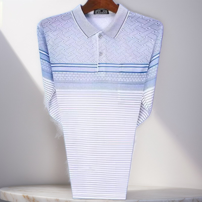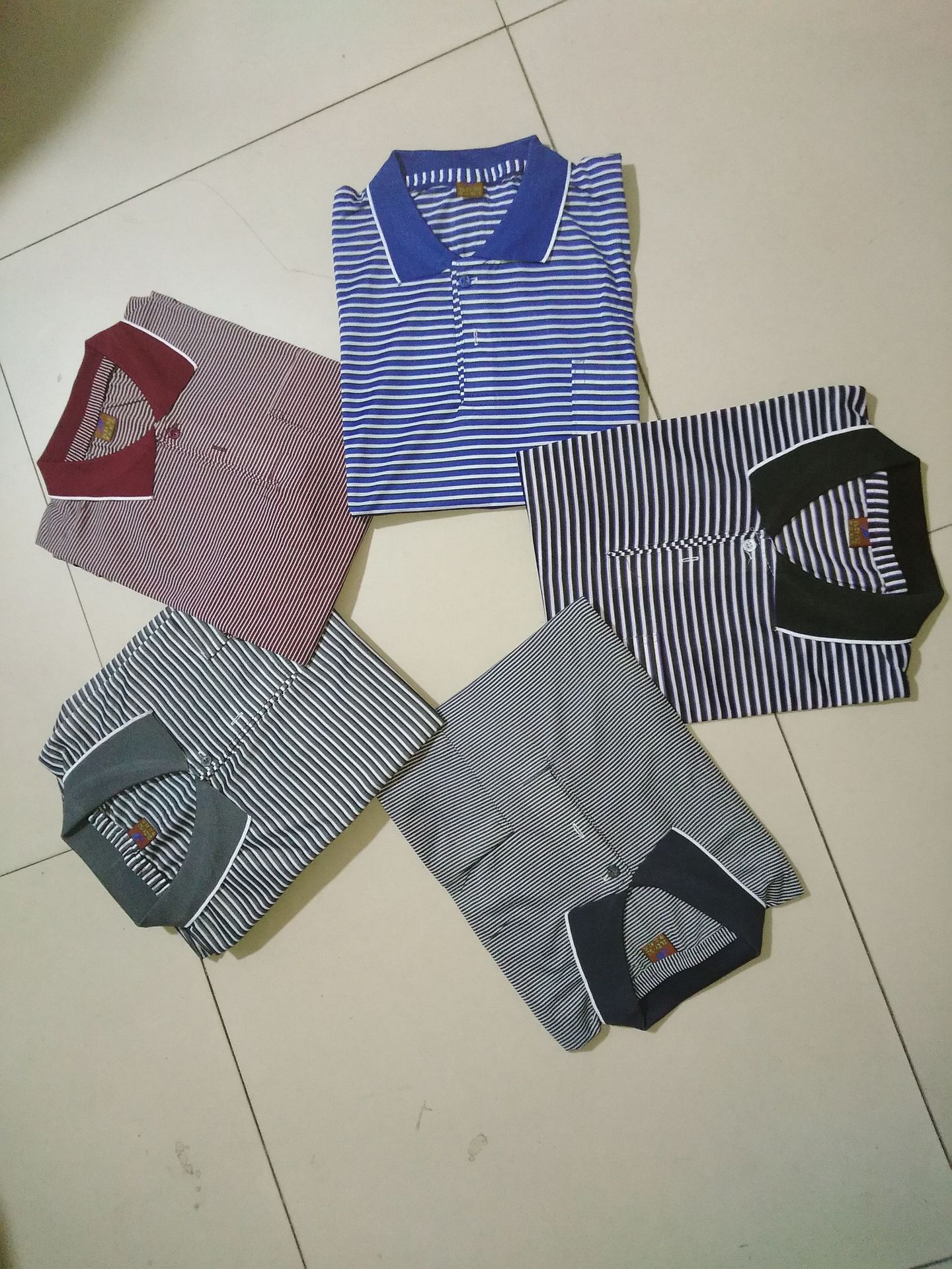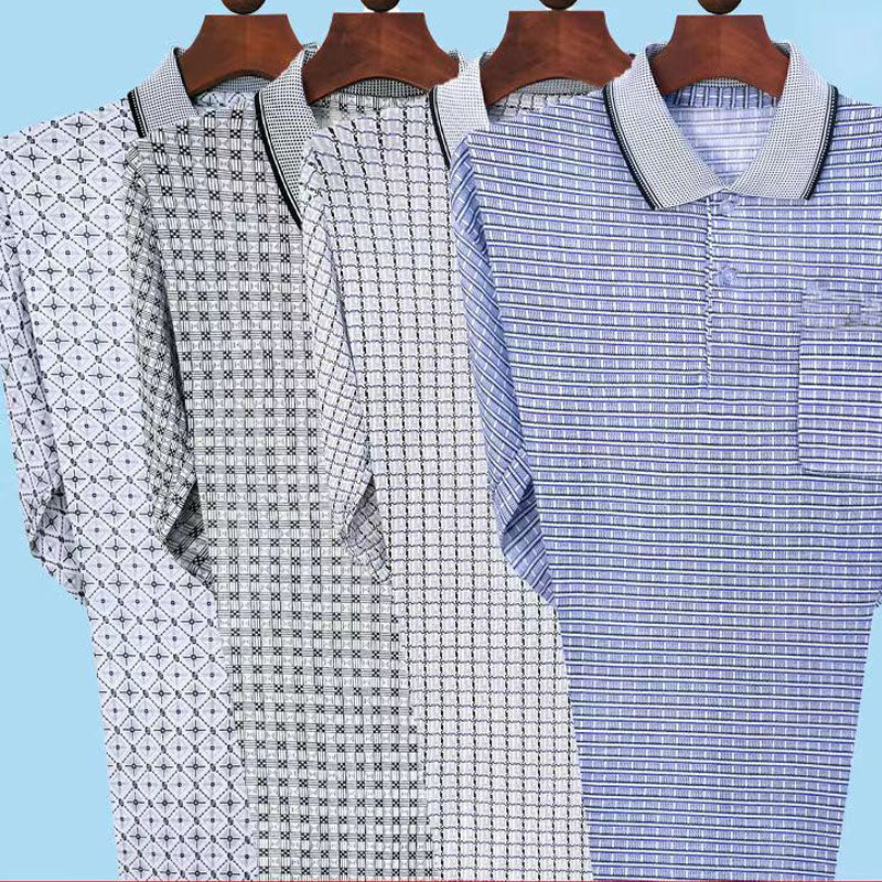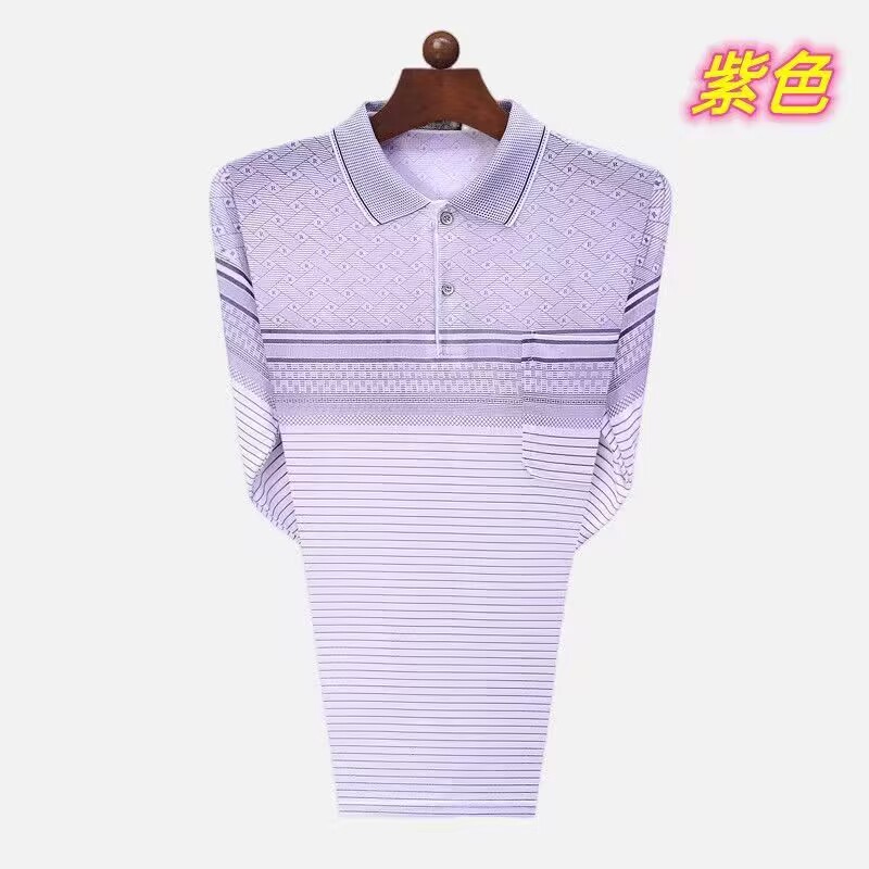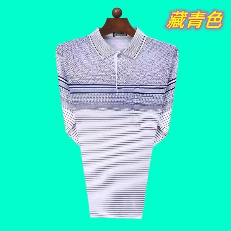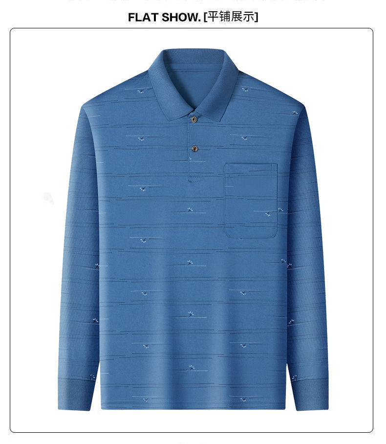 2024 남자 중년 티셔츠 봄과 가을 옷깃 최고 남자 캐주얼 느슨한 긴팔 줄무늬 아빠 탑스토어 가기