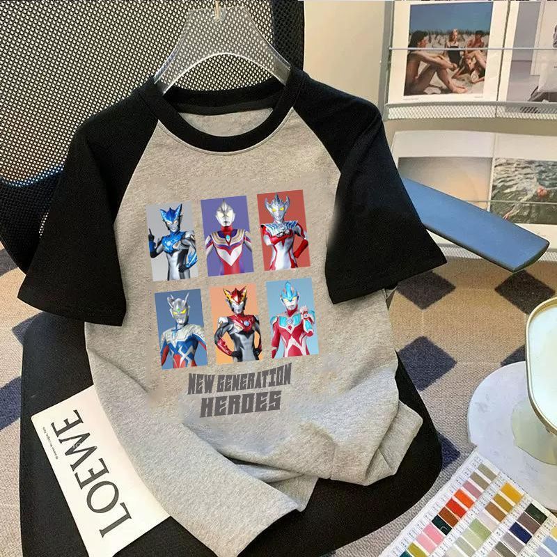 남학생 바느질 반팔 티셔츠 울트라 맨 어린이 Degas Saiwen Raglan 반소매 탑 핸섬 패션스토어 가기