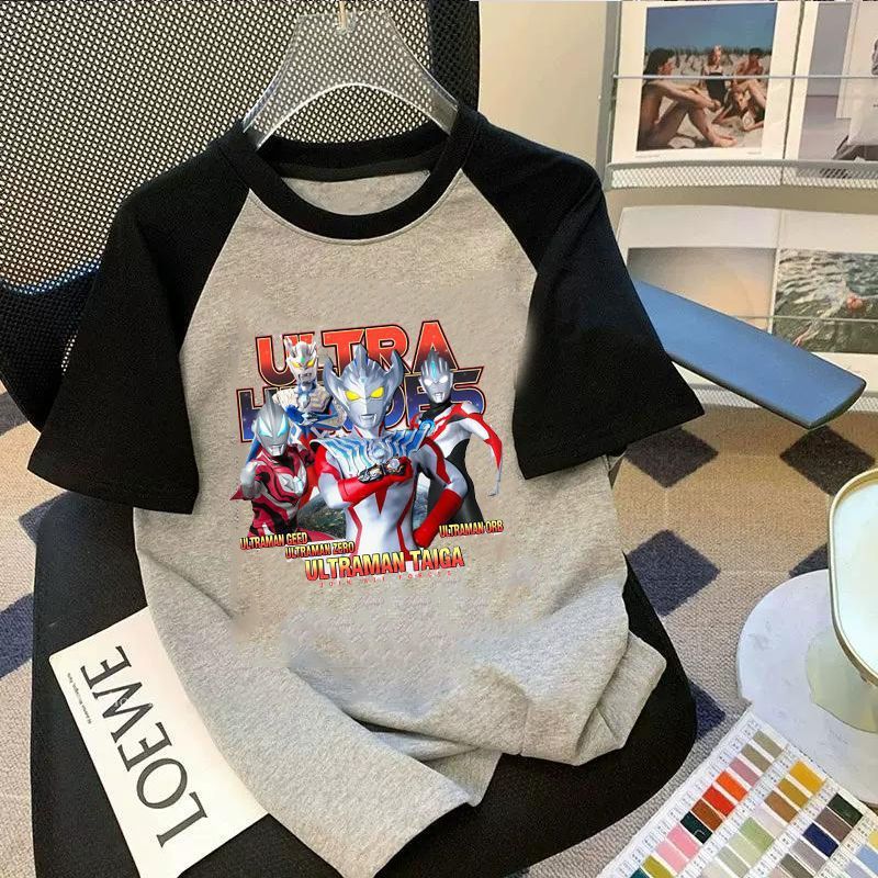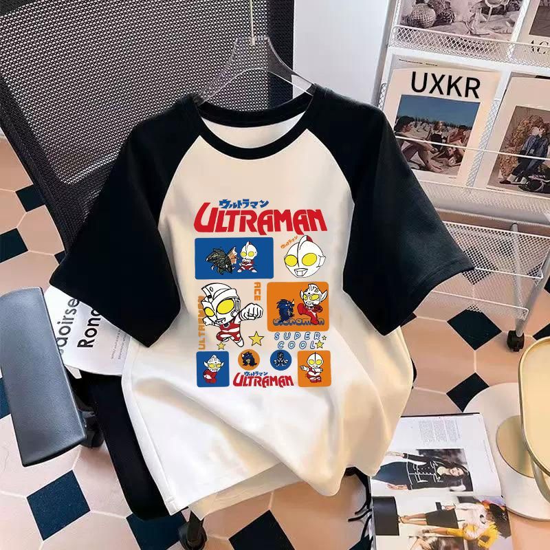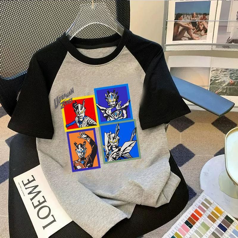 남학생 바느질 반팔 티셔츠 울트라 맨 어린이 Degas Saiwen Raglan 반소매 탑 핸섬 패션
