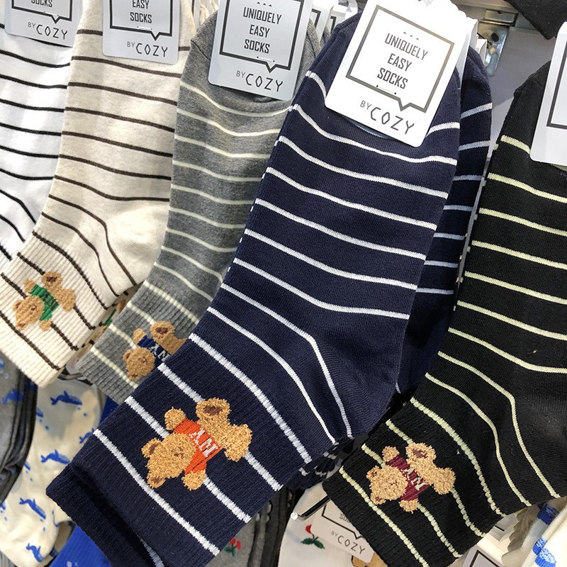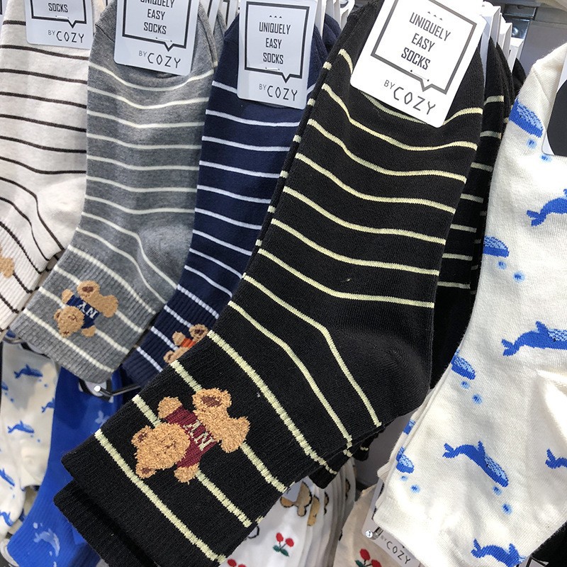 한국 동대문 양말 핀스트라이프 잠금 곰 귀여운 여자 양말 코지 대학 스타일 만화 면 양말스토어 가기