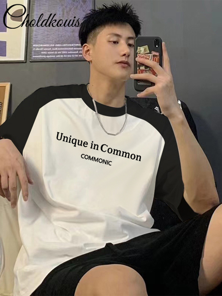 여름 반팔 신작 라운드 넥 퓨어 코튼 루즈 셔츠 트렌디 브랜드 남성 반팔 헤비 탑 트렌드
