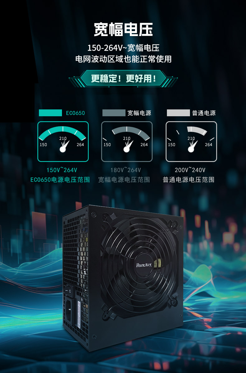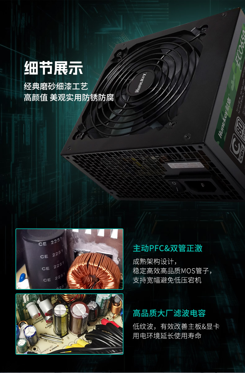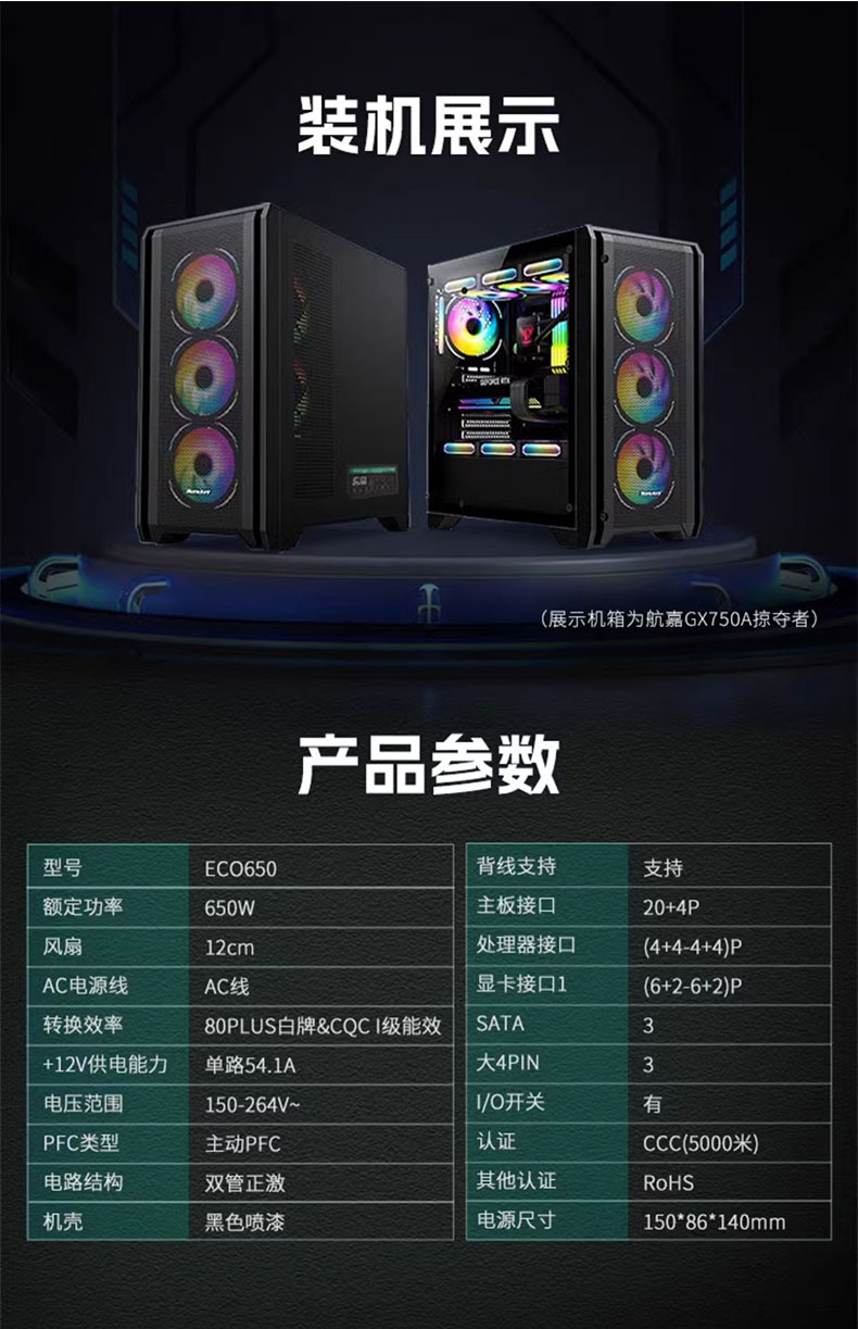 Hangjia ECO650 화이트 브랜드 클래스 I 에너지 효율 이중 인증 등급 650 W 와이드 롱 라인 데스크탑 컴퓨터 파워 블랙스토어 가기
