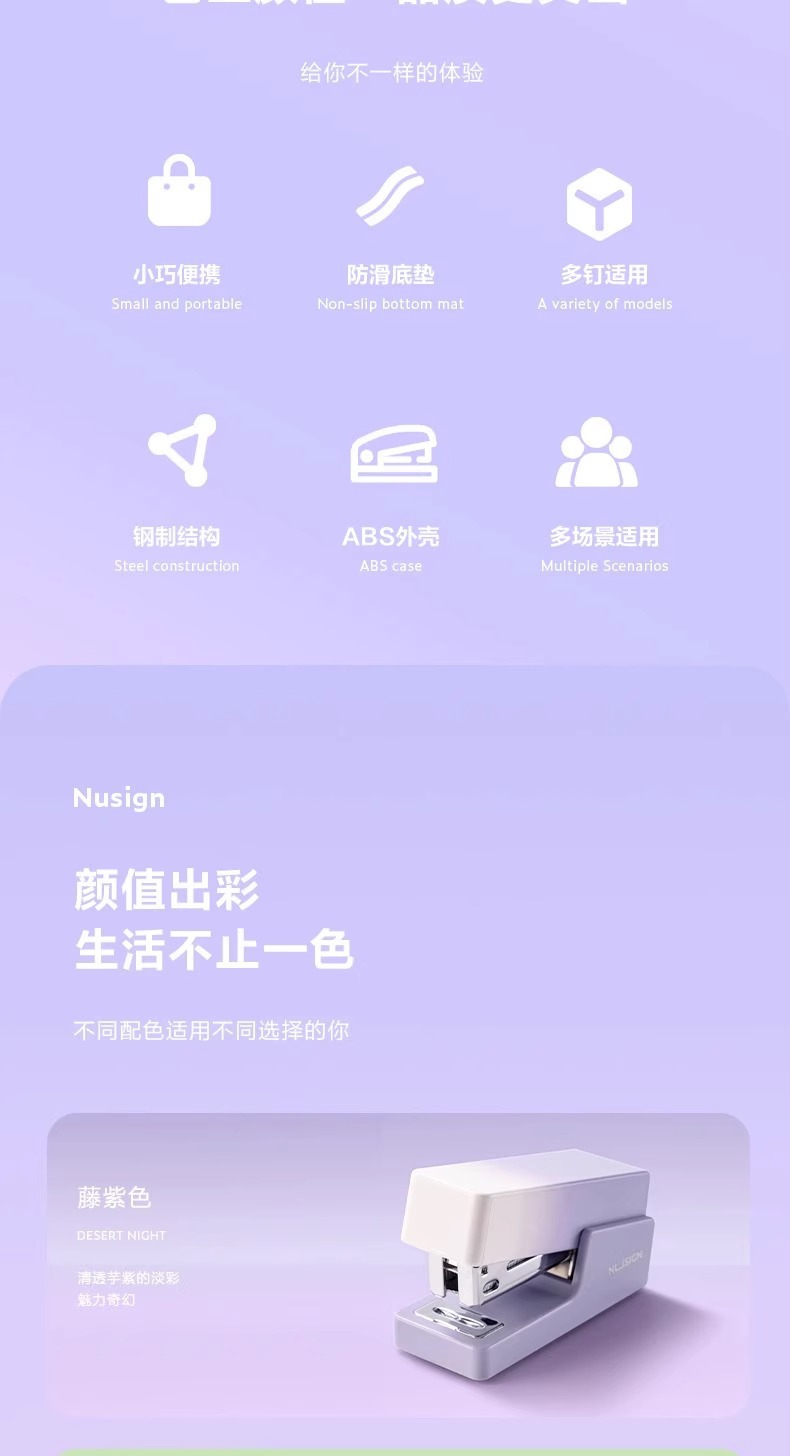 Deliniusay 그라디언트 스테이플러 학생 미니 소규모 노동 절약 스테이플러 사무실 휴대용 NS083A