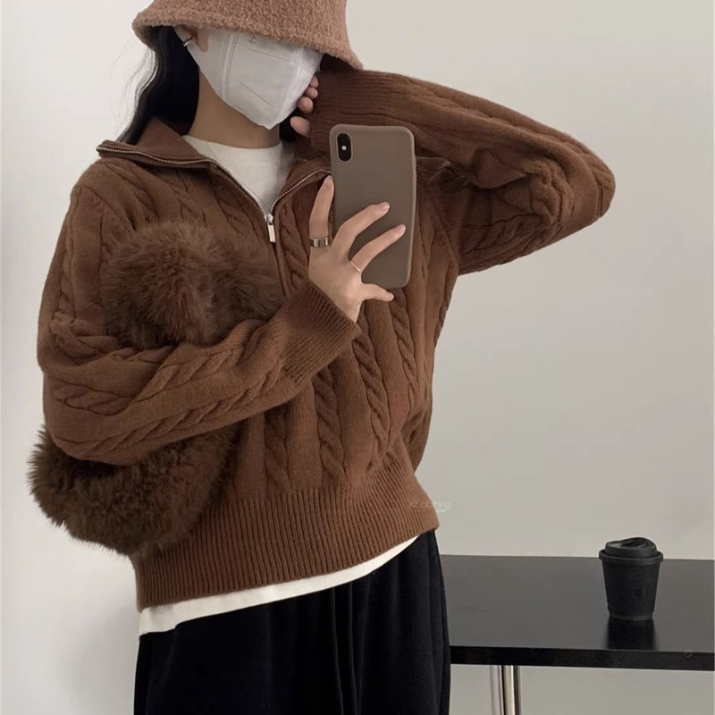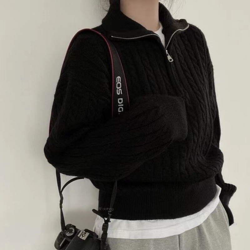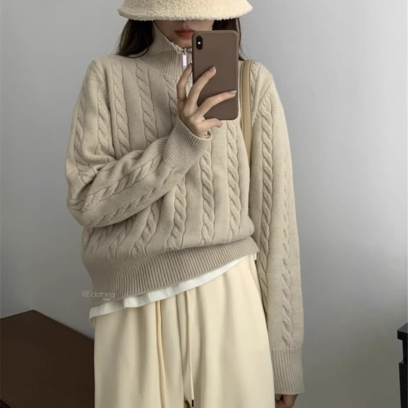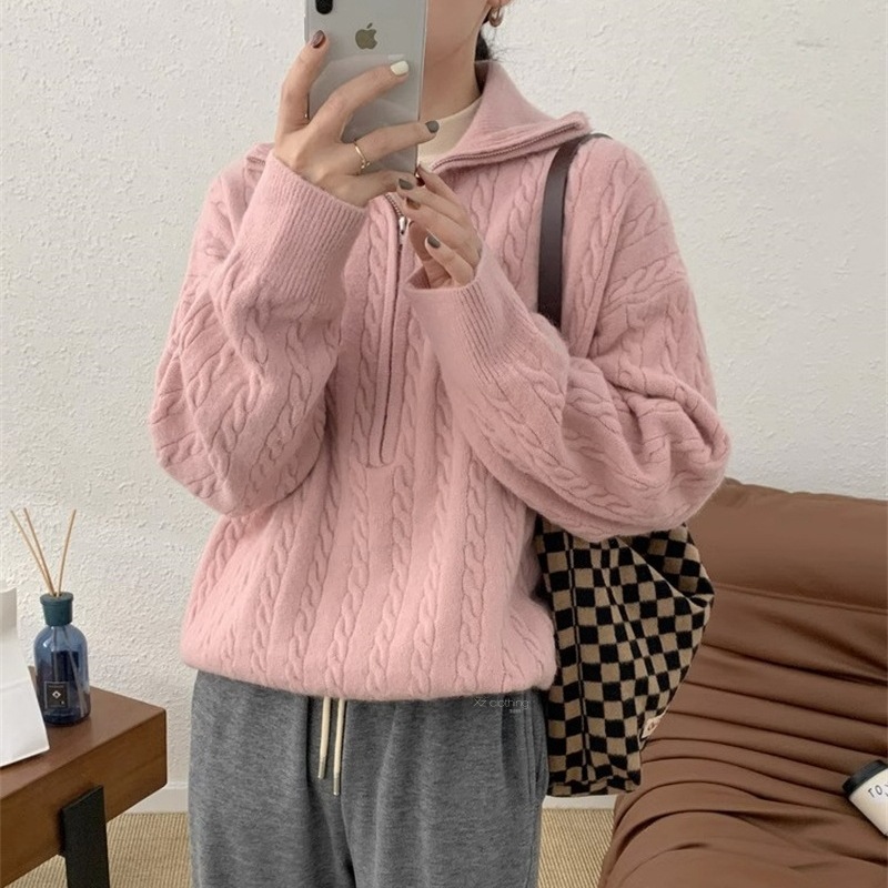 옷깃 반 지퍼 트위스트 풀오버 스웨터 여성의 가을과 겨울 게으른 느슨한 한국 스타일 작은 캐주얼 니트 탑
