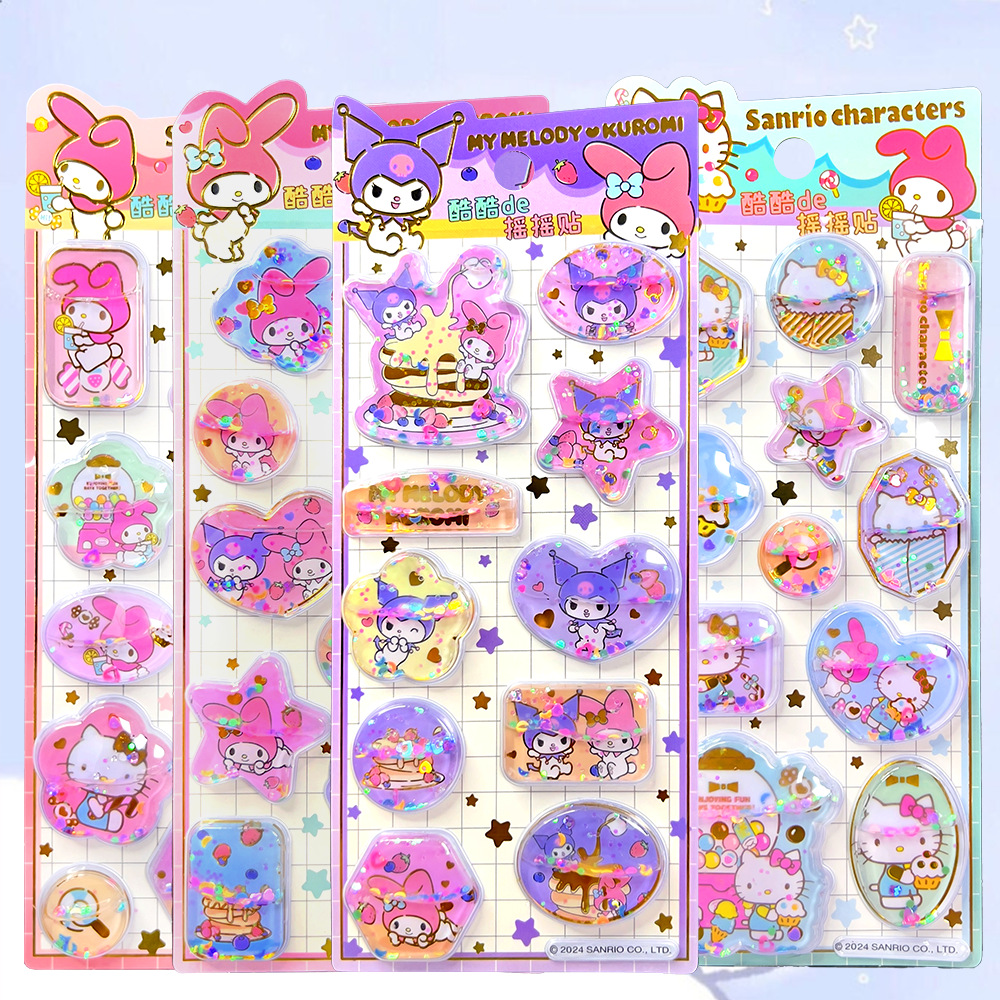 멜로디 쉐이크 워터 스티커 어린이 만화 3 차원 물 퀵 샌드 스티커 소녀 원피스 반짝이는 크리스탈 페이스트스토어 가기
