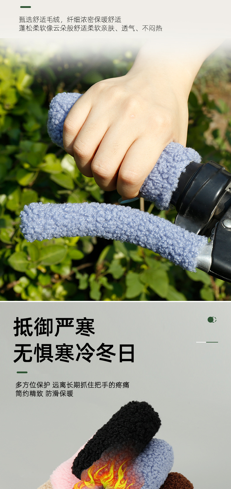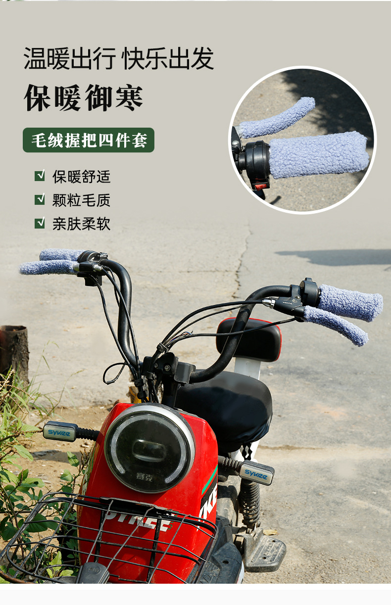 겨울 전기 자전거 오토바이 핸들 커버 세발 자전거 곡물 벨벳 핸들 커버 따뜻한 미끄럼 방지 지원 도매스토어 가기