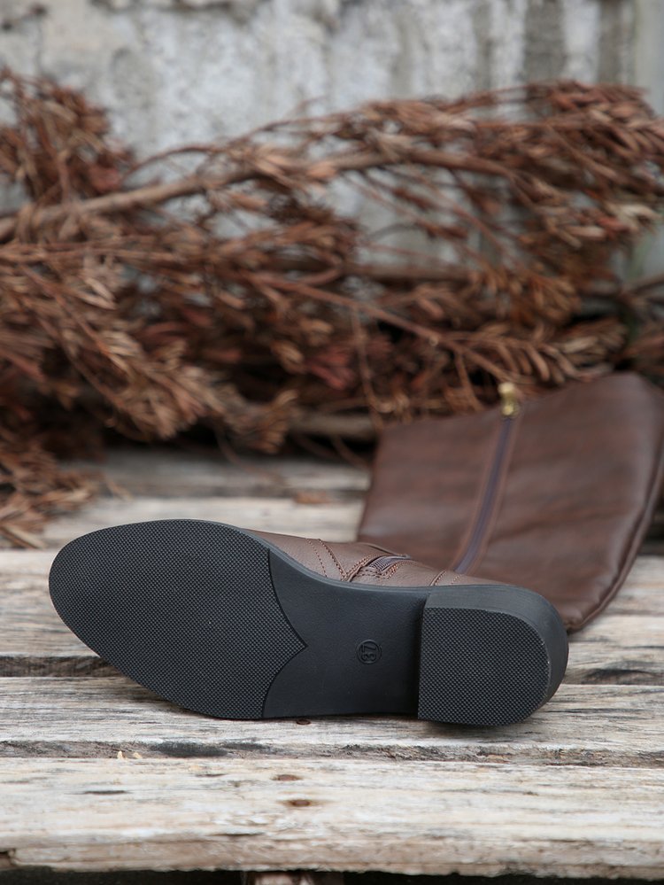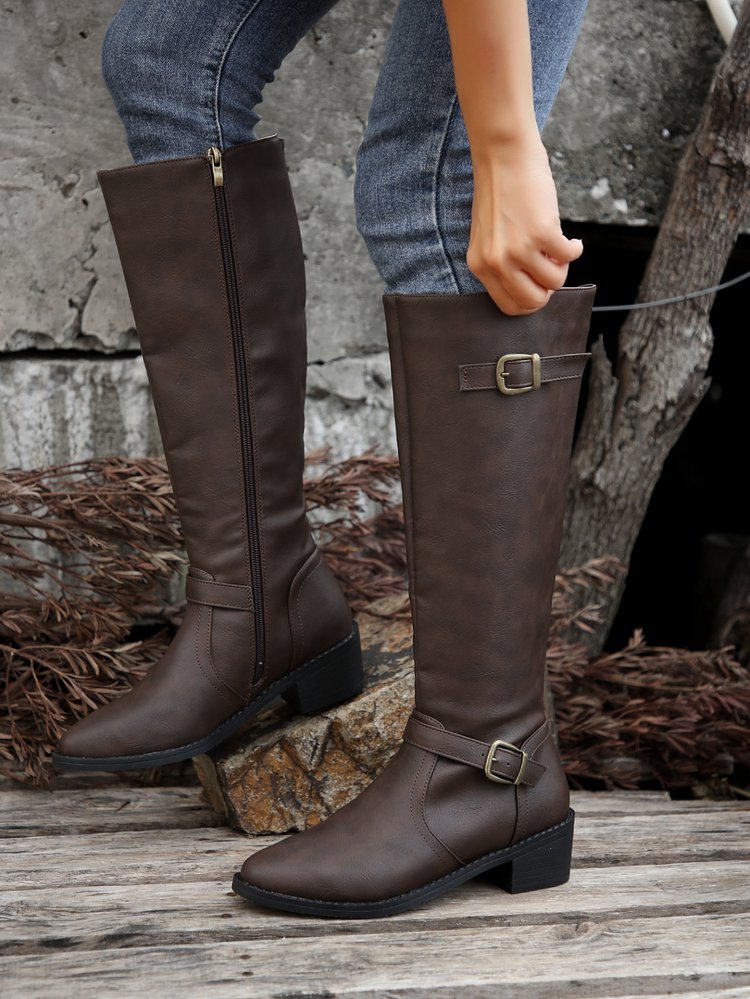 대외 무역 플러스 사이즈 스퀘어 힐 뾰족한 기관차 바람 여성 부츠 2024 가을과 겨울 새로운 하이 튜브 그러나 무릎 아웃 부츠 temu스토어 가기