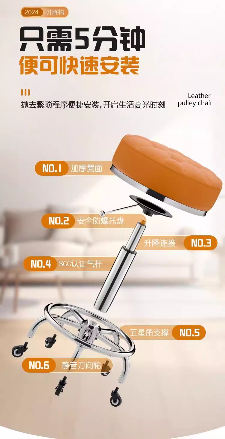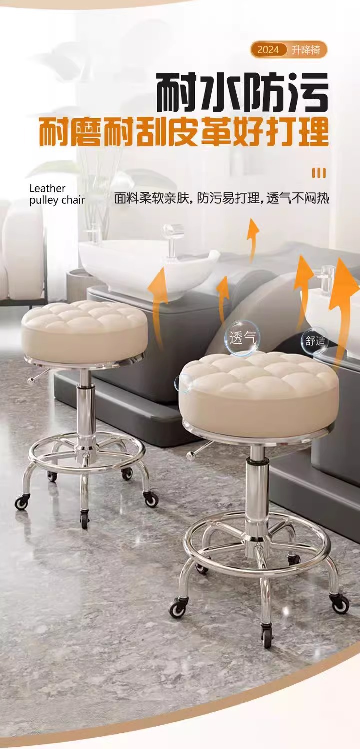 헤어 커팅 의자 산업용 의자 회전 리프팅 라운드 의자 가정용 풀리 특수 뷰티 의자 조용한 내구성 실용적인 하중 베어링