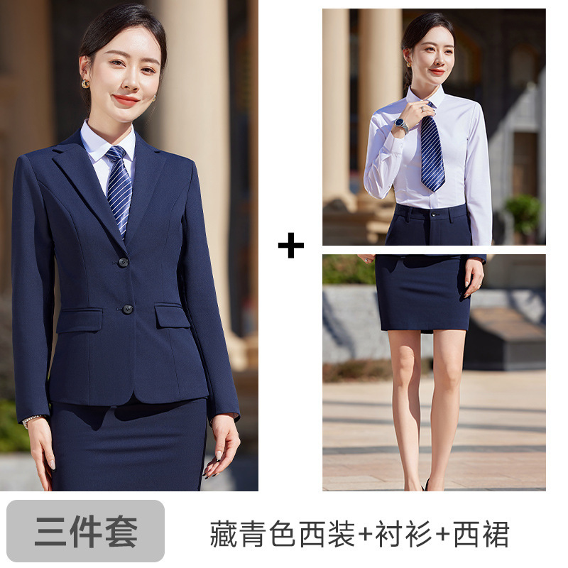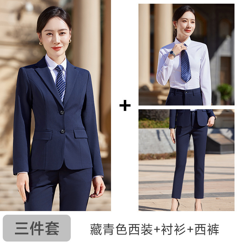 • 3종 세트: 남색 여성 정장 + 흰색 셔츠 + 바지