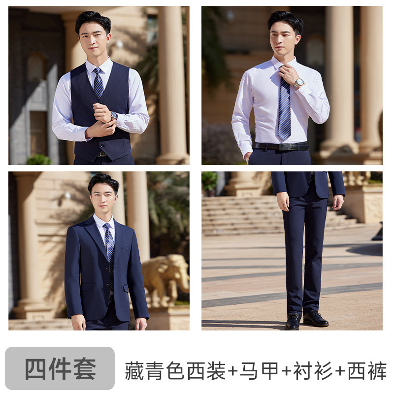 • 4종 세트: 남색 남성 정장 + 흰색 셔츠 + 조끼 + 바지