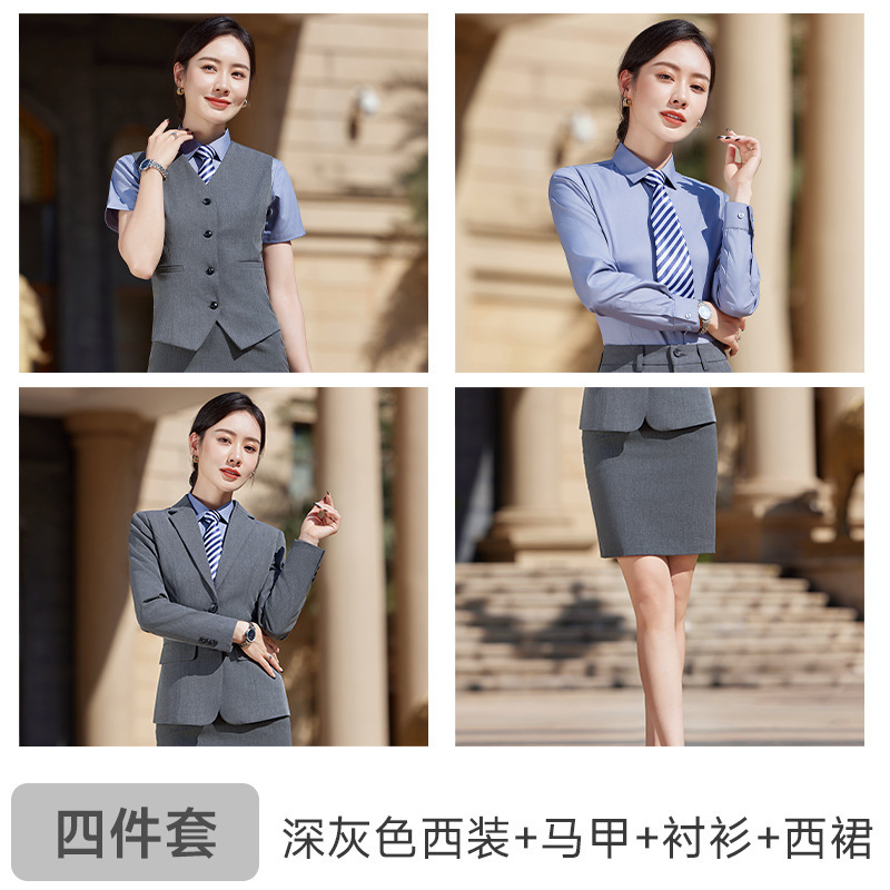 • 4종 세트: 다크 그레이 여성 정장 + 그레이 셔츠 + 조끼 + 스커트