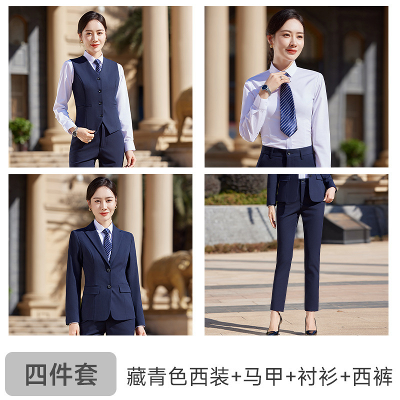 • 4종 세트: 남색 여성 정장 + 흰색 셔츠 + 조끼 + 바지