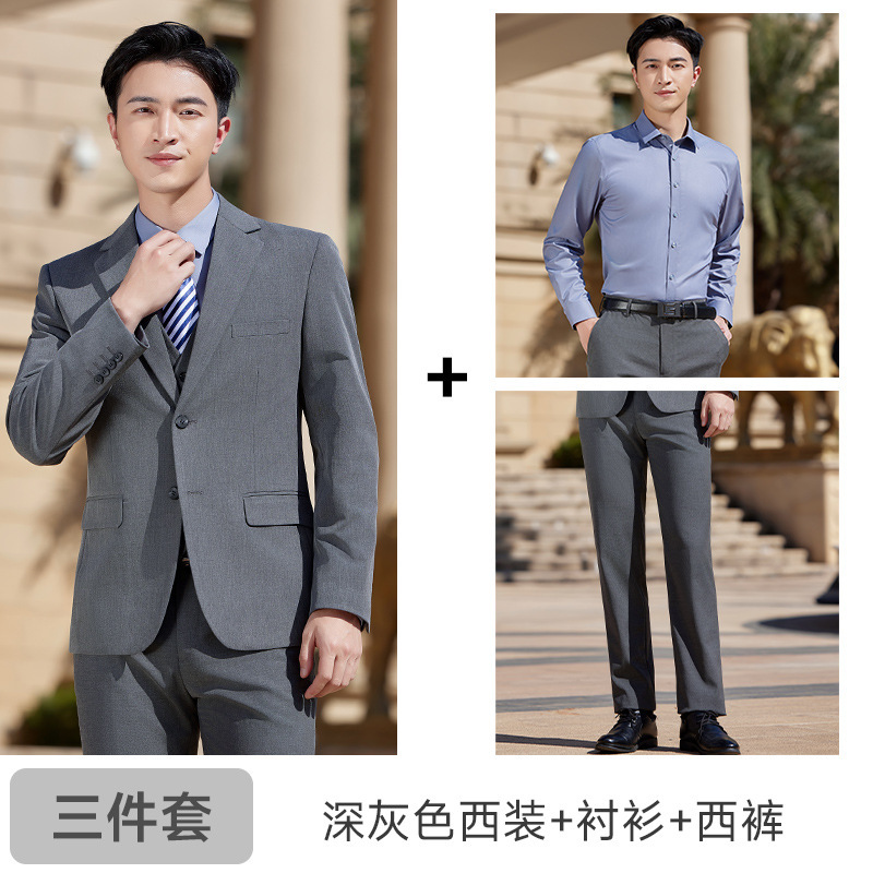 • 쓰리피스 슈트: 다크 그레이 남성 정장 + 그레이 셔츠 + 바지