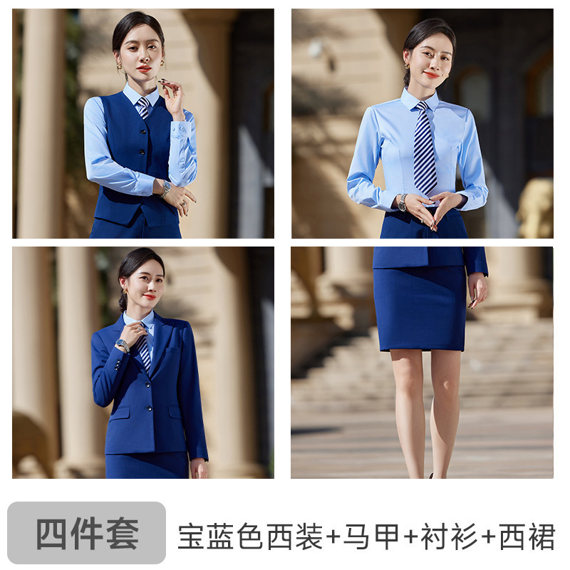 • 4종 세트: 로얄 블루 여성 정장 + 블루 셔츠 + 조끼 + 스커트