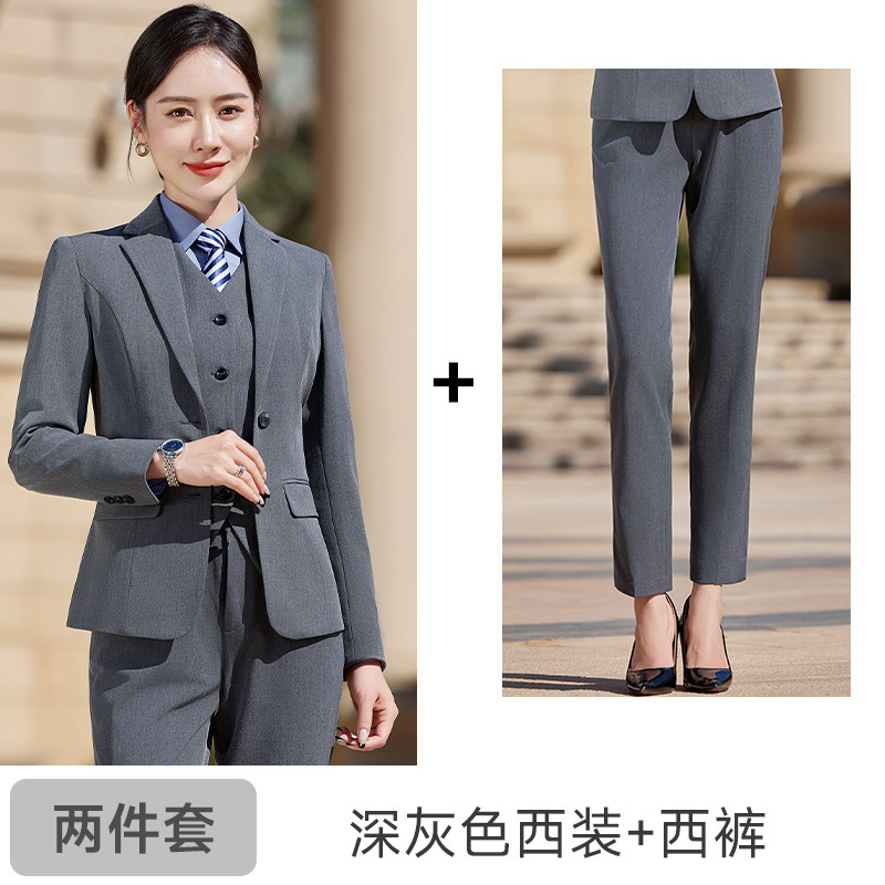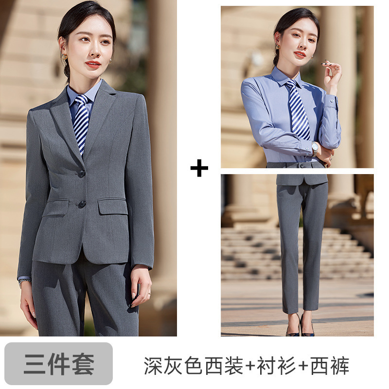 • 쓰리피스 슈트: 다크 그레이 여성 정장 + 그레이 셔츠 + 바지