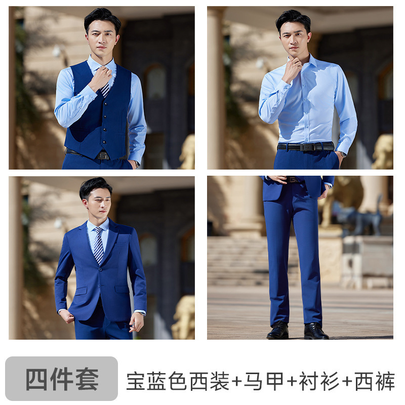 • 4종 세트: 로얄 블루 남성 정장 + 블루 셔츠 + 조끼 + 바지