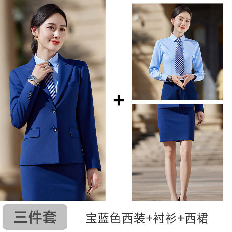 • 3종 세트: 로얄 블루 여성 정장 + 블루 셔츠 + 스커트