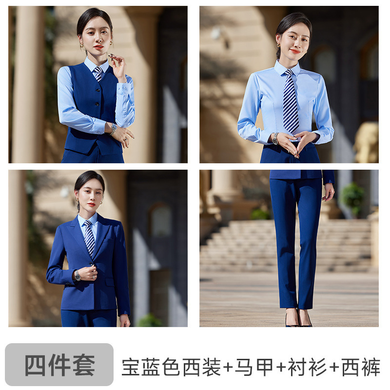 • 4종 세트: 로얄 블루 여성 정장 + 블루 셔츠 + 조끼 + 바지