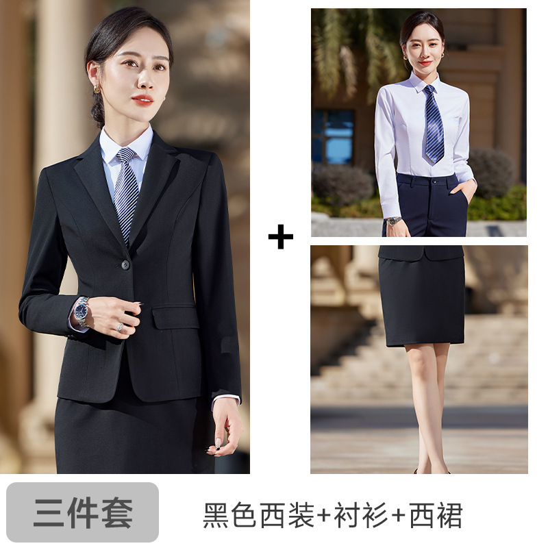 • 쓰리피스 슈트: 블랙 여성 정장 + 화이트 셔츠 + 스커트