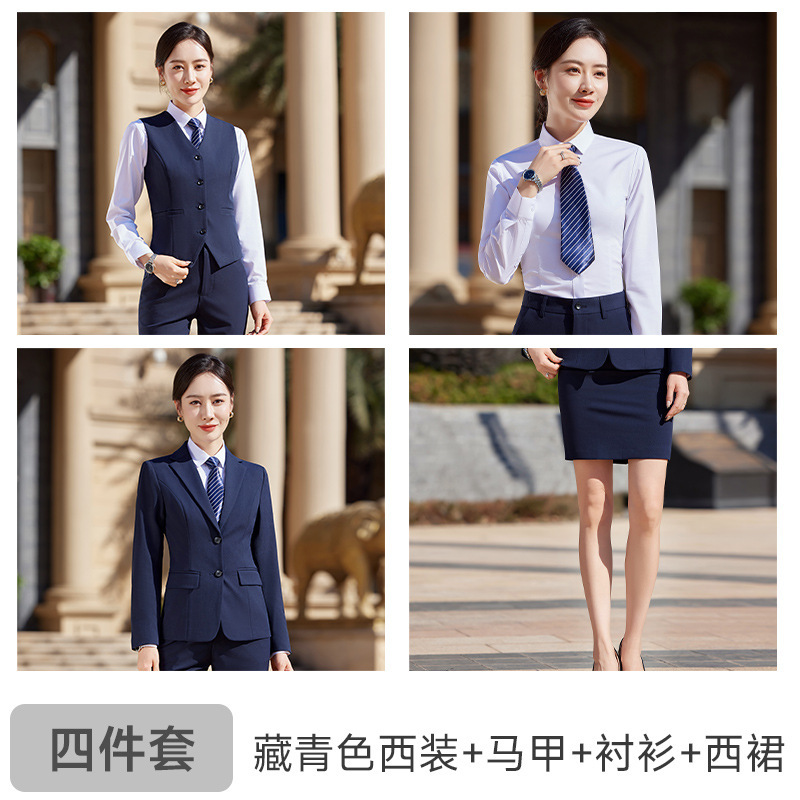 • 4종 세트: 남색 여성 정장 + 흰색 셔츠 + 조끼 + 스커트