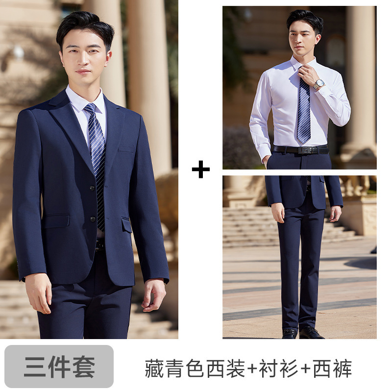 • 쓰리피스 슈트: 네이비 블루 남성 정장 + 화이트 셔츠 + 바지