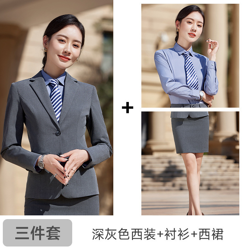 • 쓰리피스 슈트: 다크 그레이 여성 정장 + 그레이 셔츠 + 스커트